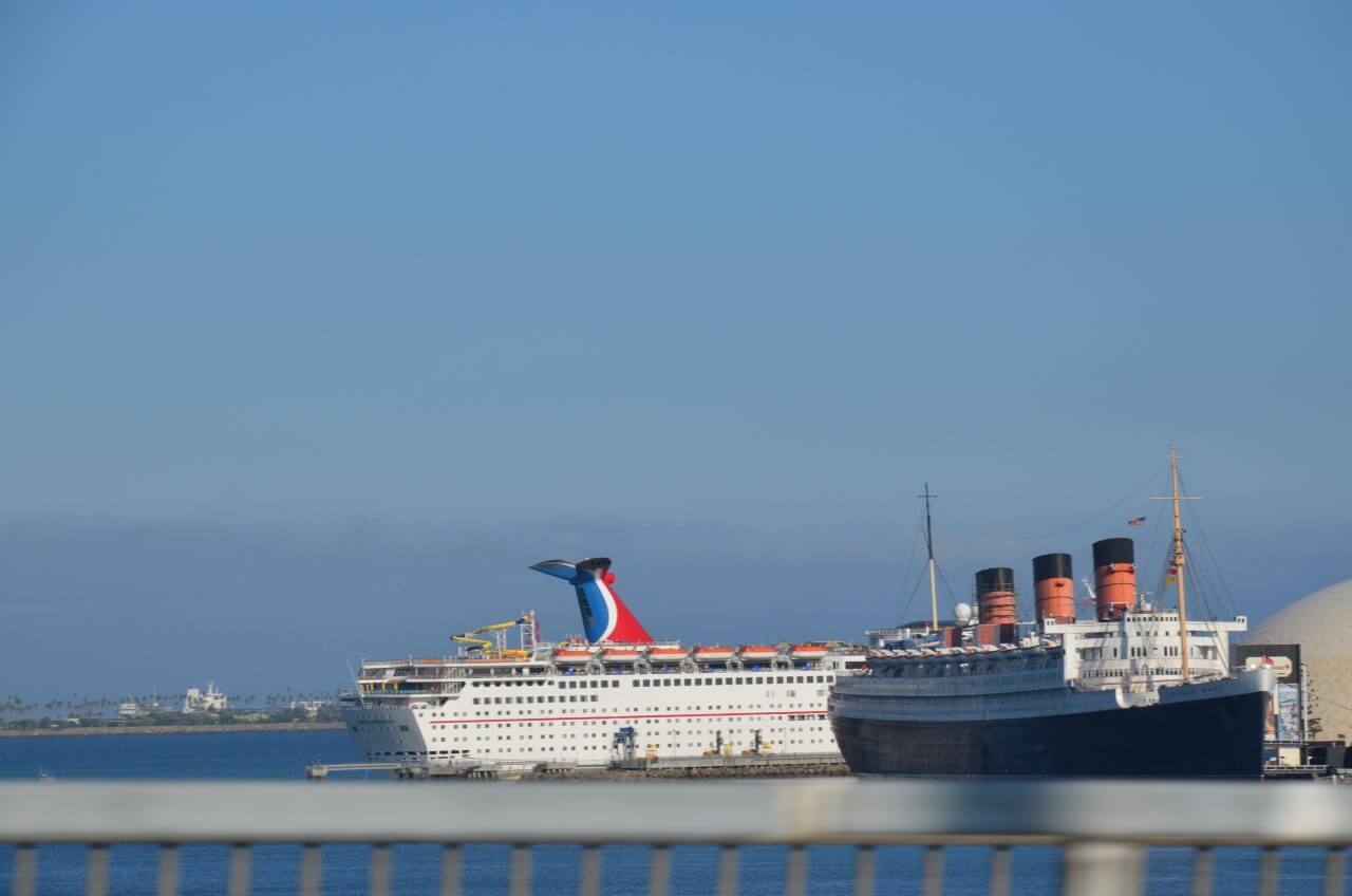 Wir fahren nun immer entlang des Pazifiks auf relativ kleinen Straßen Richtung Süden. Kalifornien ist herrlich! Obwohl die Lufttemperatur von 19 Grad ja noch gar nicht viel ist, macht die Sonne aber alles wett. Immer wieder machen wir kleine Stopps, um die herrliche Landschaft, das Meer und die Sonne zu genießen. In Long Beach machen wir einen Abstecher zum Hafenbecken und sehen uns die altehrwürdige “Queen Mary”, die hier als Hotel-und Museumsschiff vor Anker liegt.