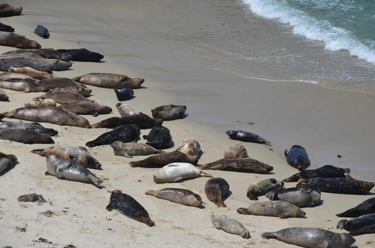 In einem Einkaufszentrum versorgen wir uns mit allem Nötigen, wie Weingläsern und dem dazugehörigem Wein, einer Kühlbox fürs Auto, Wasserflaschen und einigen anderen Lebensmitteln. Danach zieht es uns wieder an die Küste. Wir fahren weiter Richtung Carlsbad vorbei an wunderschönen Strandabschnitten und Häusern. In La Jolla legen wir spontan eine Pause ein. Hier erleben wir bei herrlichstem Wetter viele junge Menschen die am Wochenende zum Gleitschirmfliegen an den Strand gekommen sind. Hier gefällt es uns.