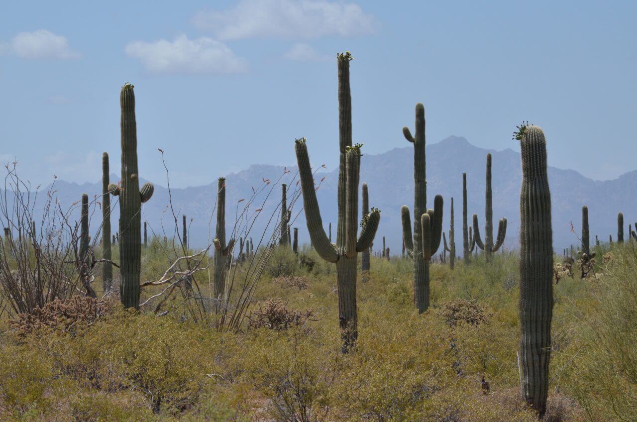 Wir entscheiden uns für den kürzeren der beiden Drives, den “Ajo Mountain Drive”. (21 Milen) Wir sind nun ungefähr zweieinhalb Stunden unterwegs und sehen uns diese faszinierende Gewäche aus der Nähe an. Der namensgebende Organ Pipe Cactus (Orgelpfeifen), eine ansonsten in den USA nicht so sehr verbreitete Kaktusart, erinnert an einen losen Strauß stacheliger Arme. Bei 20 Grad und leicht bewölktem Himmel ist das Aussteigen sogar angenehm, denn eigentlich sind um diese Jahreszeit Temperaturen bis zu 40 Grad normal.