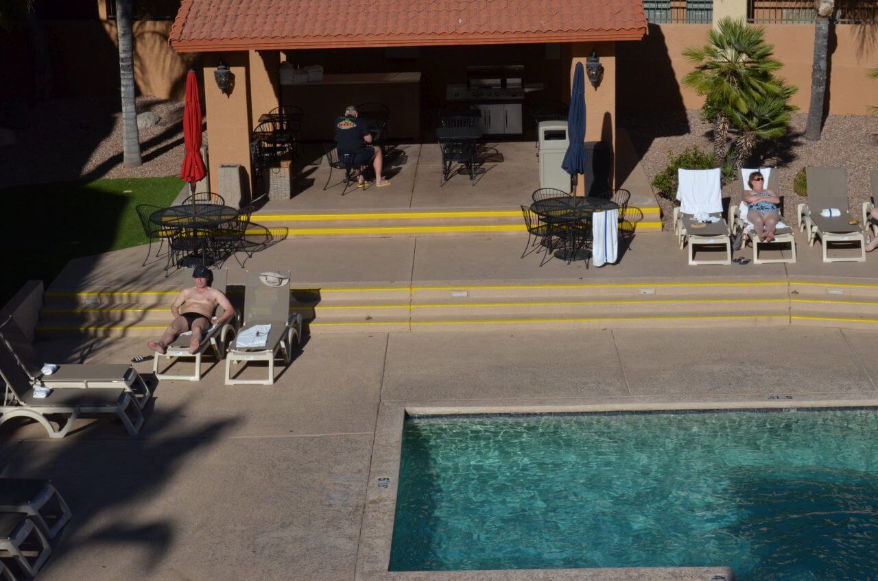 Nach ca. 4 Stunden Fahrt erreichen wir unser Hotel “Fuente Inn & Suites” in Yuma. Wir genießen noch einige Zeit bei Bier und Wein den schönen tropischen Garten, bevor es morgen weiter geht.