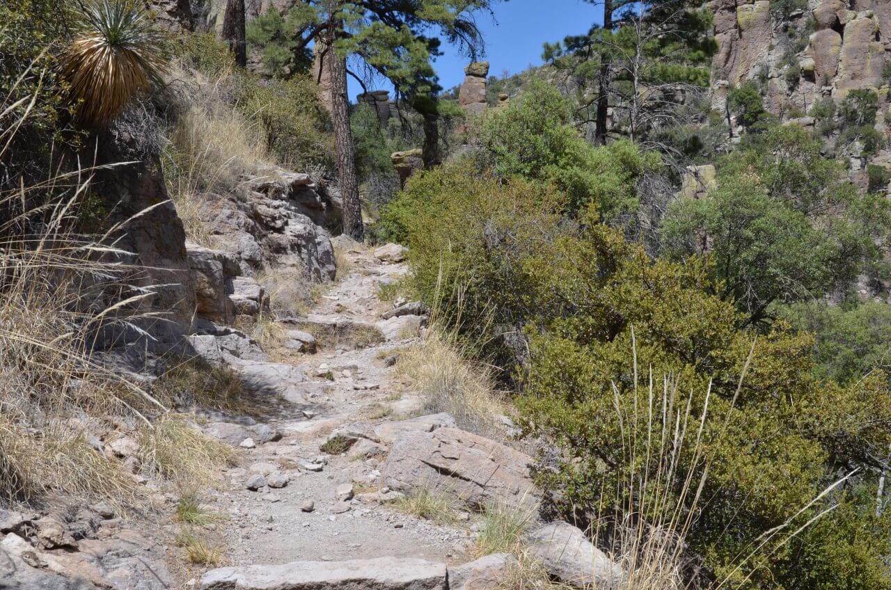 Weiter geht es dann zum Chiricahua National Monument, dem “Land der stehenden Felsen” so wie die Apachen diese Region bezeichneten. Am Visitor Center erhalten wir Karten und danach begeben wir uns hinauf zum Massai Point, 2094 m hoch. Hier ist es extrem windig, auch sind die Temperaturen auf 21 Grad gesunken. Wir entscheiden für uns für den “Echo Canyon Loop Trail” , einem zweieinhalbstündigen sehr abwechslungsreichen Wanderweg. Wir bestaunen skurrile Felsformationen auf wunderschönen Wegen. Über Millionen von Jahren sind diese Felsformationen von der Natur so geformt worden, einfach faszinierend. Außerdem können wir uns nun auch gut vorstellen, dass dieses Gebiet für die Chirichuhua- Apachen als Rückzugsort diente als sie hier in Arizona von den weißen Siedlern bedroht wurden.