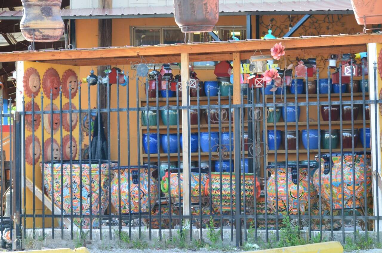 In Taos finden wir viele Galerien, Ausstellungen, Schmuckdesigner und ausgefallene Skulpturen. Alles toll – alles teuer, ein echter Künstlerort eben. Und auch diese Stadt ist komplett im Adobe-Stil erbaut worden.