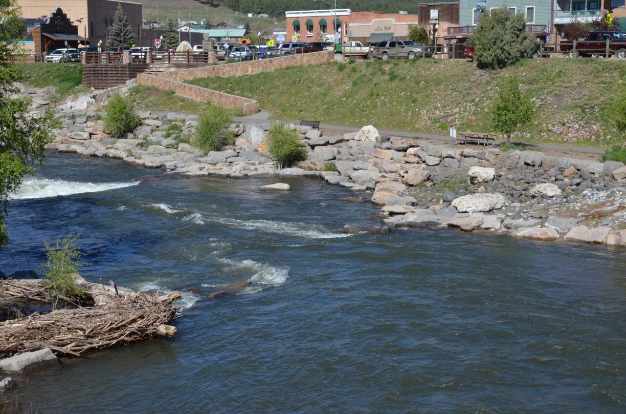 Nach einer Stunde Autofahrt erreichen wir Pagosa Springs. Dieser Ort ist berühmt für seine heißen Thermalquellen. Das Regenwasser, aber vor allen Dingen die Schneeschmelze aus den Bergen, das in den Boden eindringt, nimmt wertvolle Mineralien auf, wird durch die natürliche Erdwärme erhitzt und tritt hier in Pagosa Springs an verschiedenen Stellen aus dem Boden wieder aus. In diesem Thermalbädern kann man in bis zu 40 Grad heißen Pools baden. Umrahmt von den weiten Wäldern des “San Juan National Forest”, eine einmalige Gelegenheit, die wir uns aber entgehen lassen, da wir weiter nach Durango möchten.