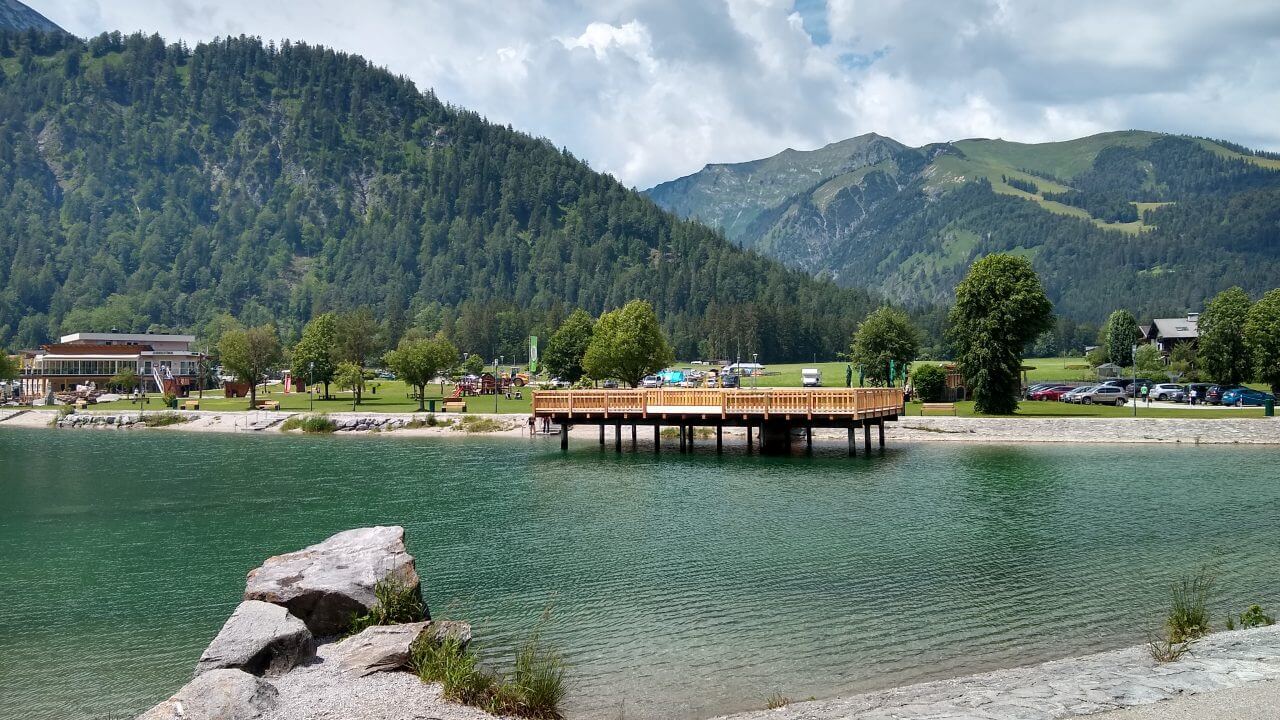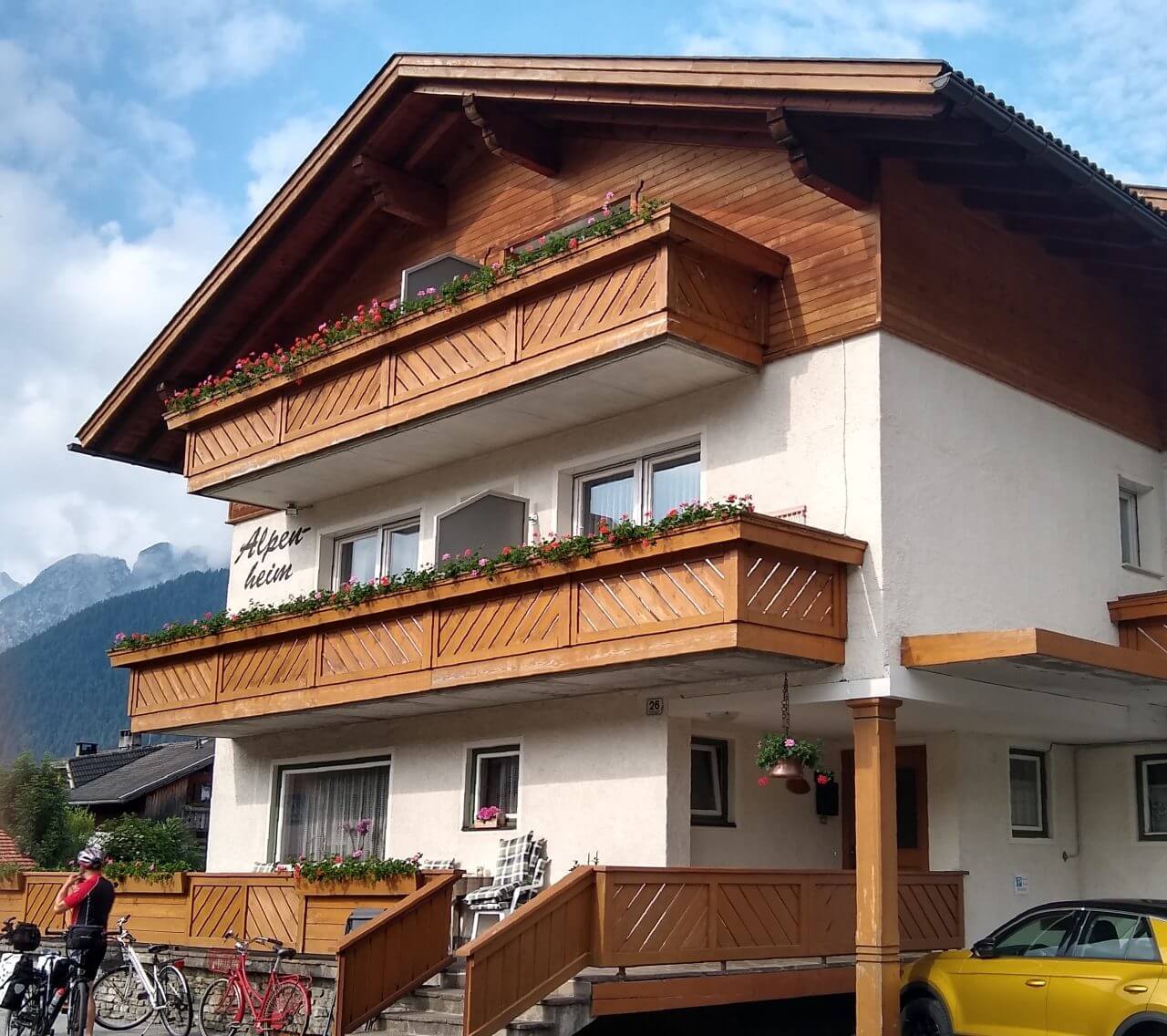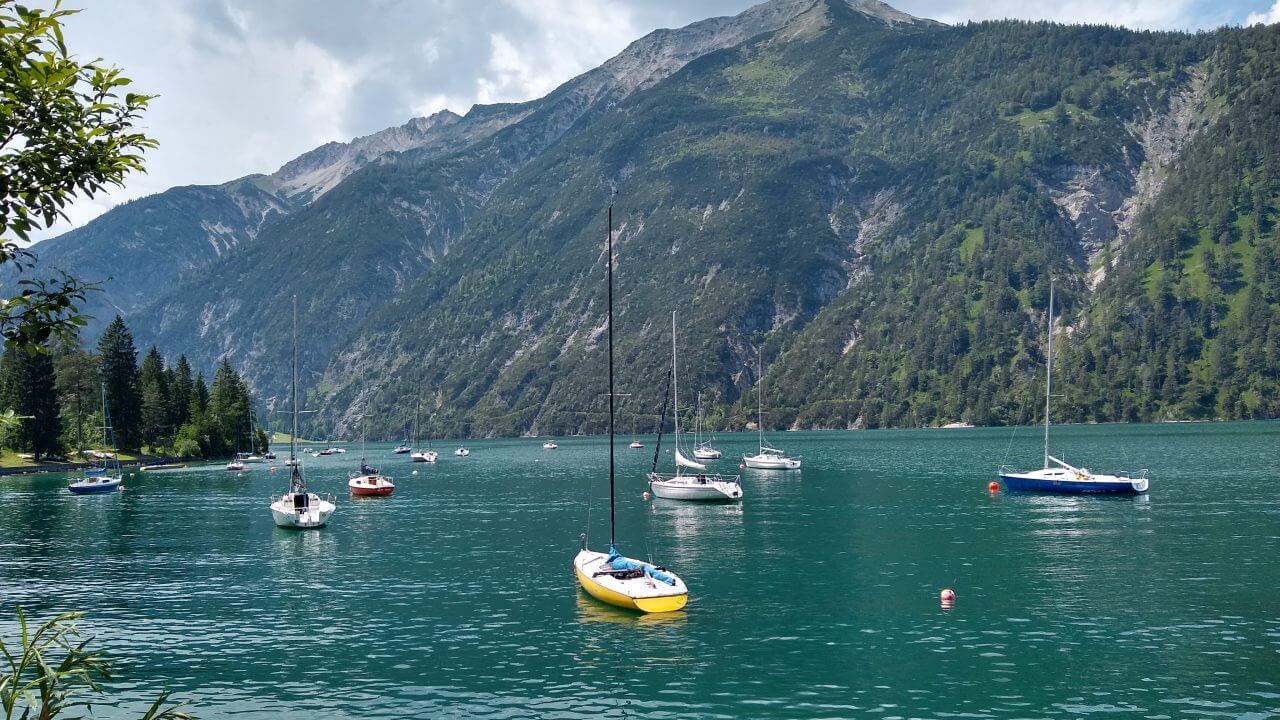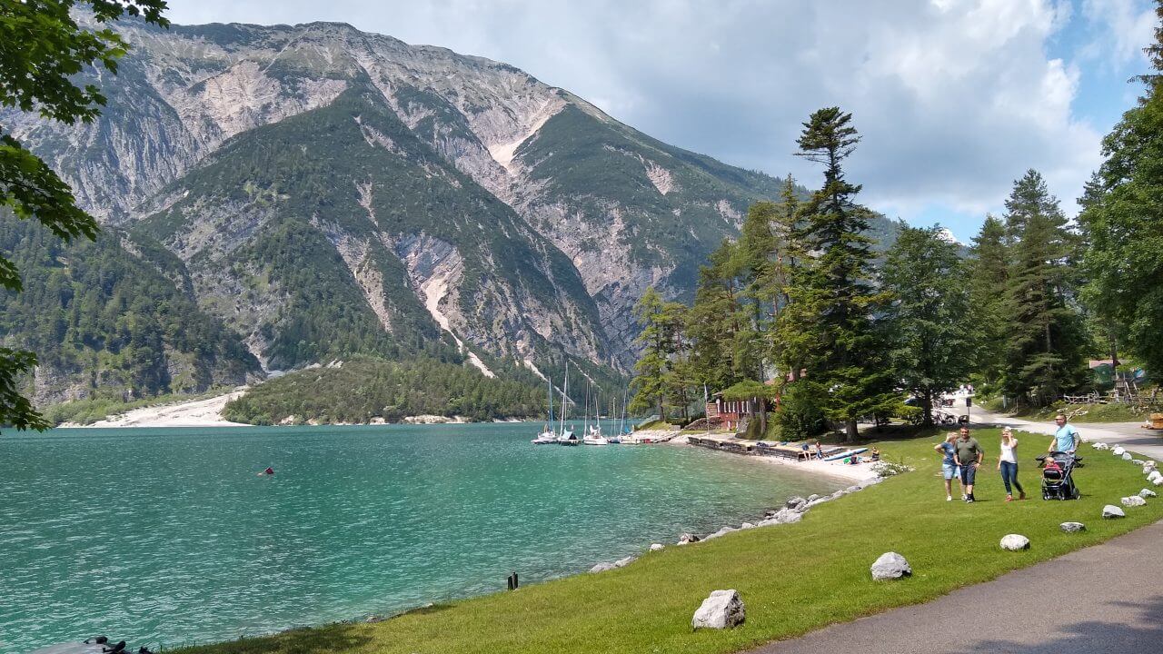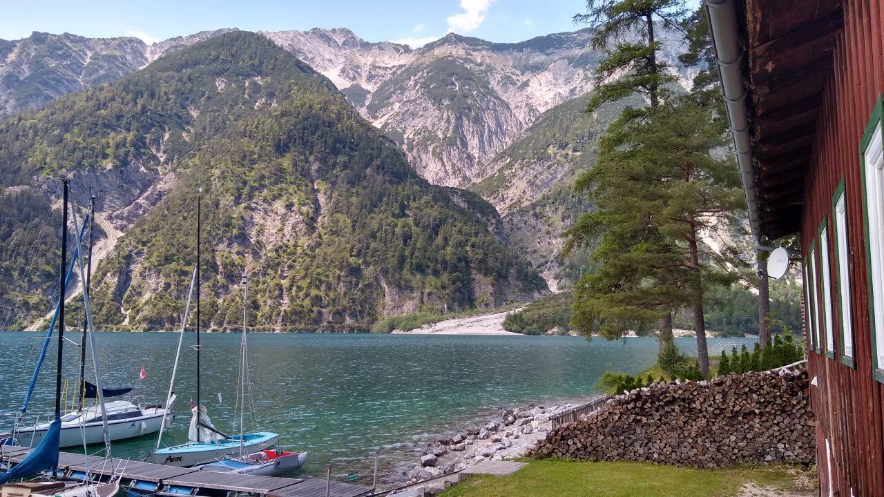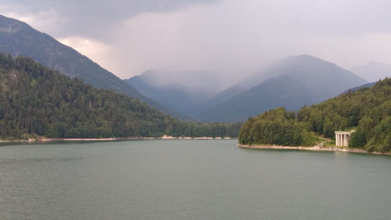 Nach einem guten Frühstück starten wir heute zum Sylvensteinstausee. Die ganze Zeit braut sich ein Gewitter über uns zusammen und trübt uns die Aussicht ein wenig. So radeln wir schleunigst über die Grenze nach Österreich, um letztendlich doch noch zweimal Unterschlupf in Wanderhütten zu suchen, um die Regenschauer abzuwarten. Am wunderschönen Achensee scheint dann auch wieder die Sonne und wir können uns gar nicht satt sehen an dem schönen Panorama. Durch den Achenwald geht es anschließend steil und stark abschüssig bis hinunter nach Jenbach. Kurz vor dem Ort machen wir jedoch einen Abstecher ins berühmte Zillertal. Dort buchen wir in Fügen ein Zimmer beim „Loithaler“ (68,€) und radeln nach 68 Tageskilometern noch ein wenig durch den Ort und essen im benachbartem Reiterhof zu Abend.