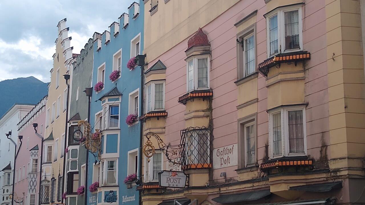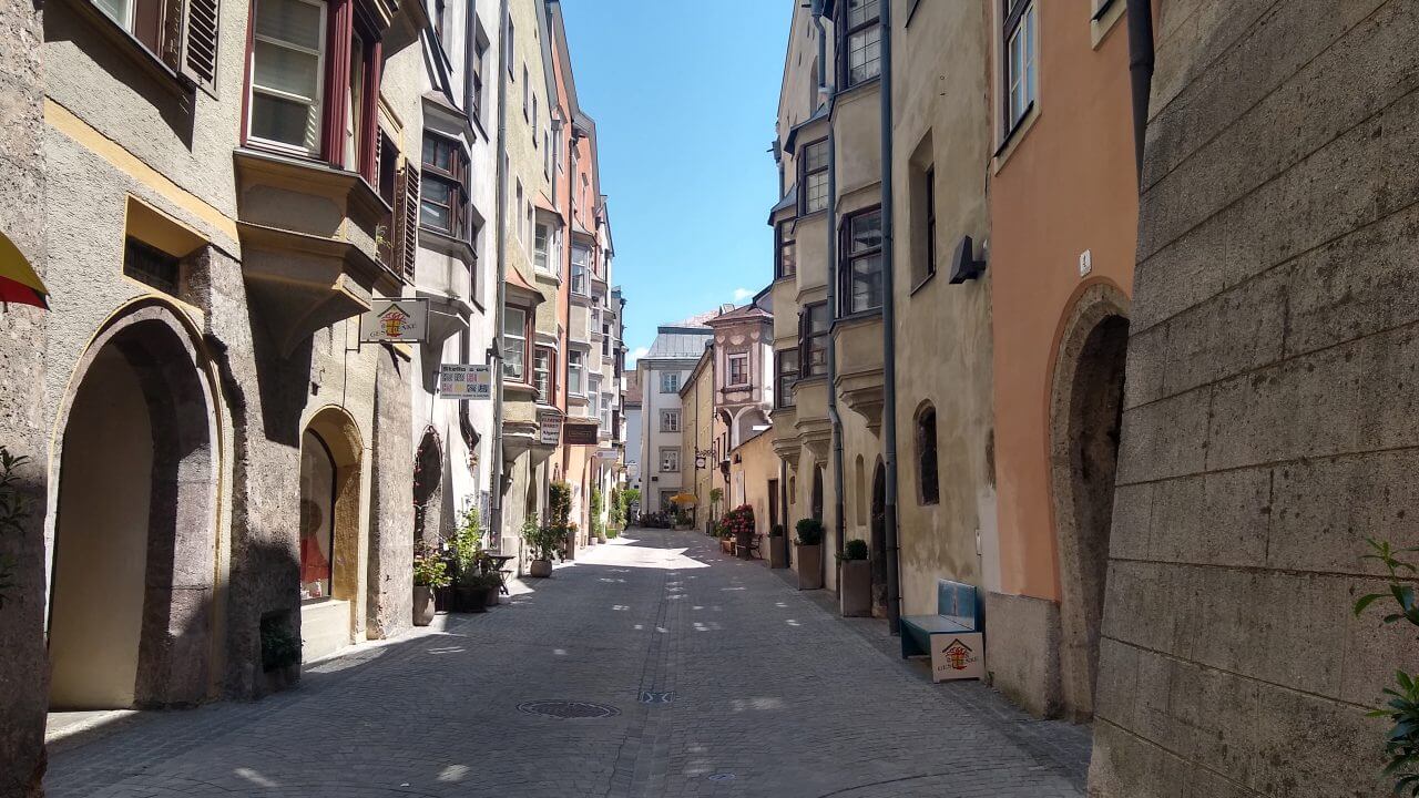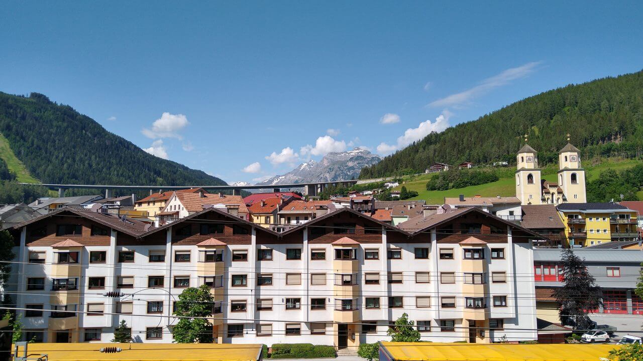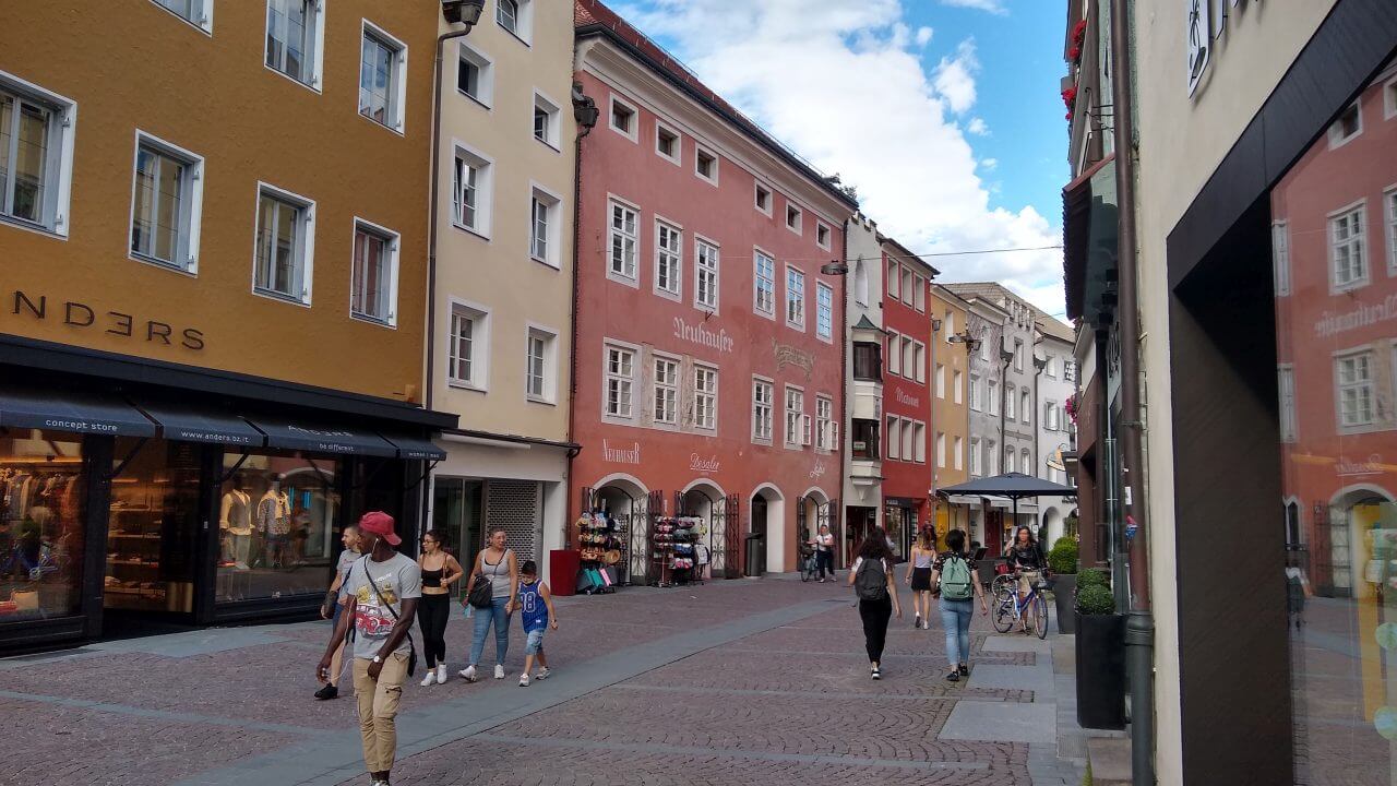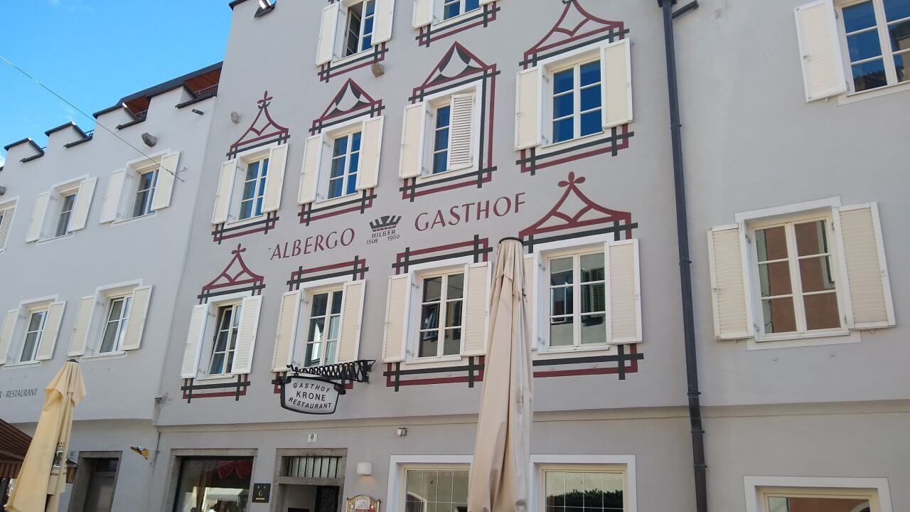 Oben angekommen, freuen wir uns beide, dass alles so gut geklappt hat und wir genießen nun wieder die gemeinsame Fahrt nach Sterzing. Hierbei geht es fast ausschließlich abwärts durch grandiose Landschaft auf einer ehemaligenBahntrasse hinab ins Eisacktal. Höchster Radfahrgenuss! Im Hotel „Sterzinger Hof“ (60,-€) mit kleinem Biergarten finden wir eine wirklich nette Unterkunft. Wir erkunden nun die superschöne Stadt in Südtirol (übrigens die nördlichste Stadt Italiens) und sind ganz begeistert von der tollen Atmosphäre.