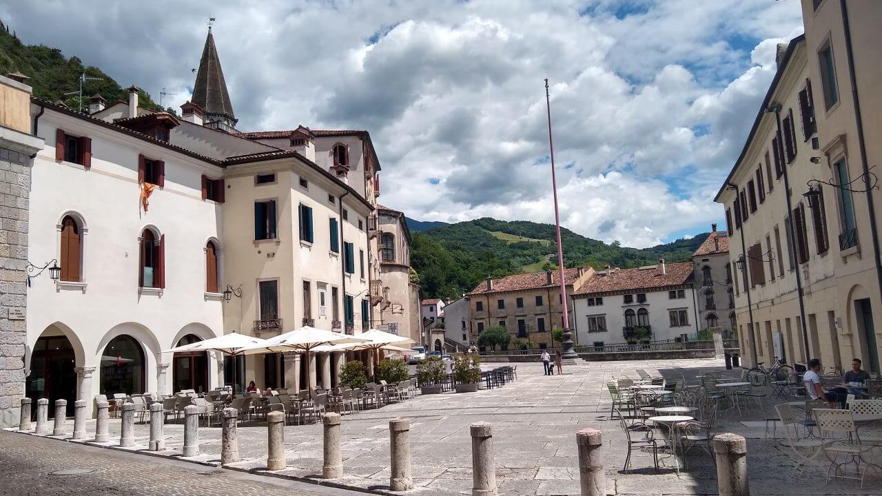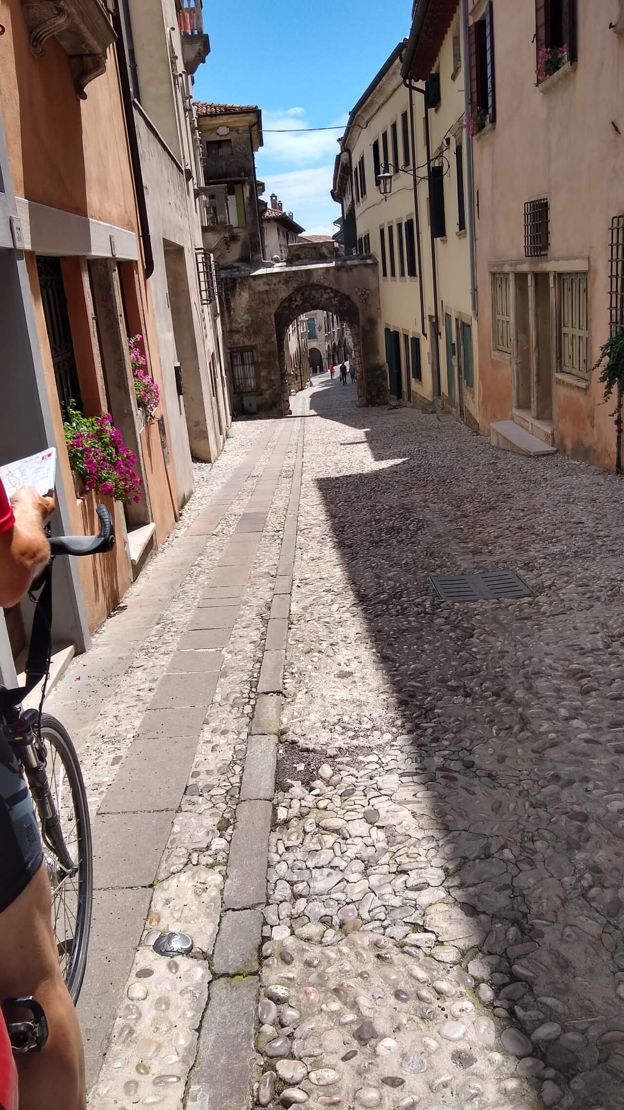 In Conegliano angekommen, stellen wir plötzlich fest, dass wir raus aus den Bergen sind. Wir befinden uns nun mitten in einem großen Weinanbaugebiet. In der mittelalterlichen Altstadt befindet sich unter anderem die älteste Weinbaufachschule Italiens. Conegliano gilt als die Heimat des Proseccos….wenn das kein Zeichen ist……