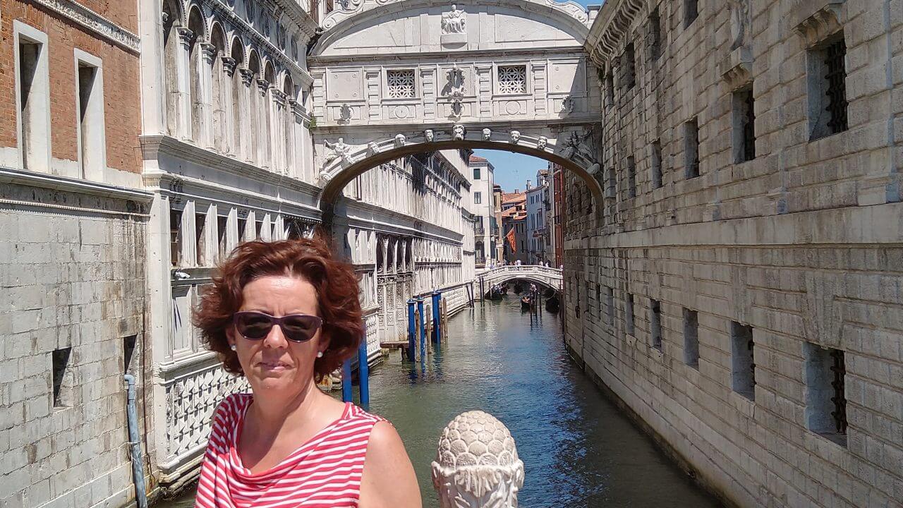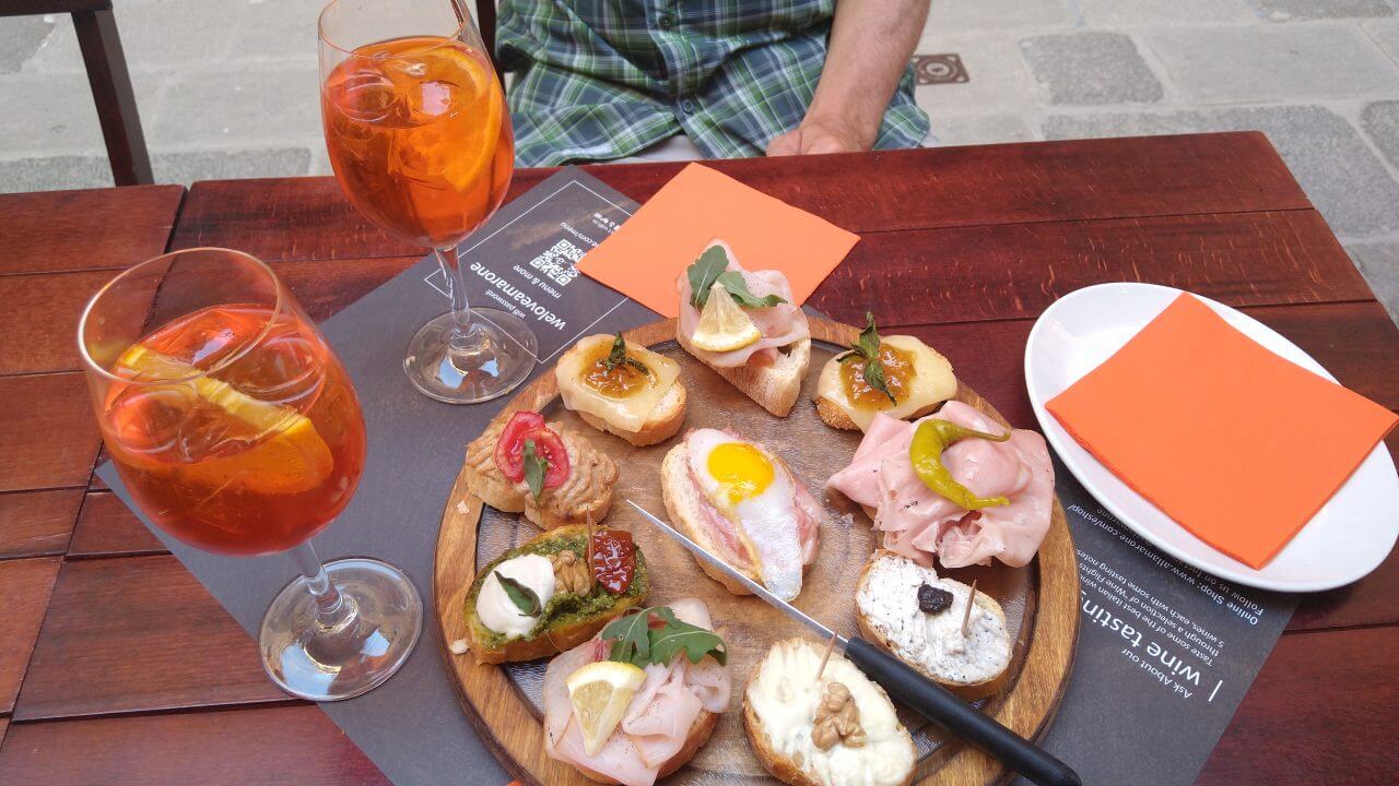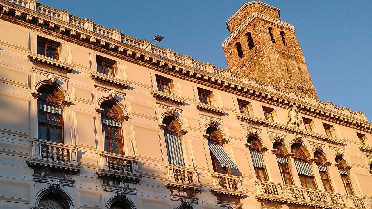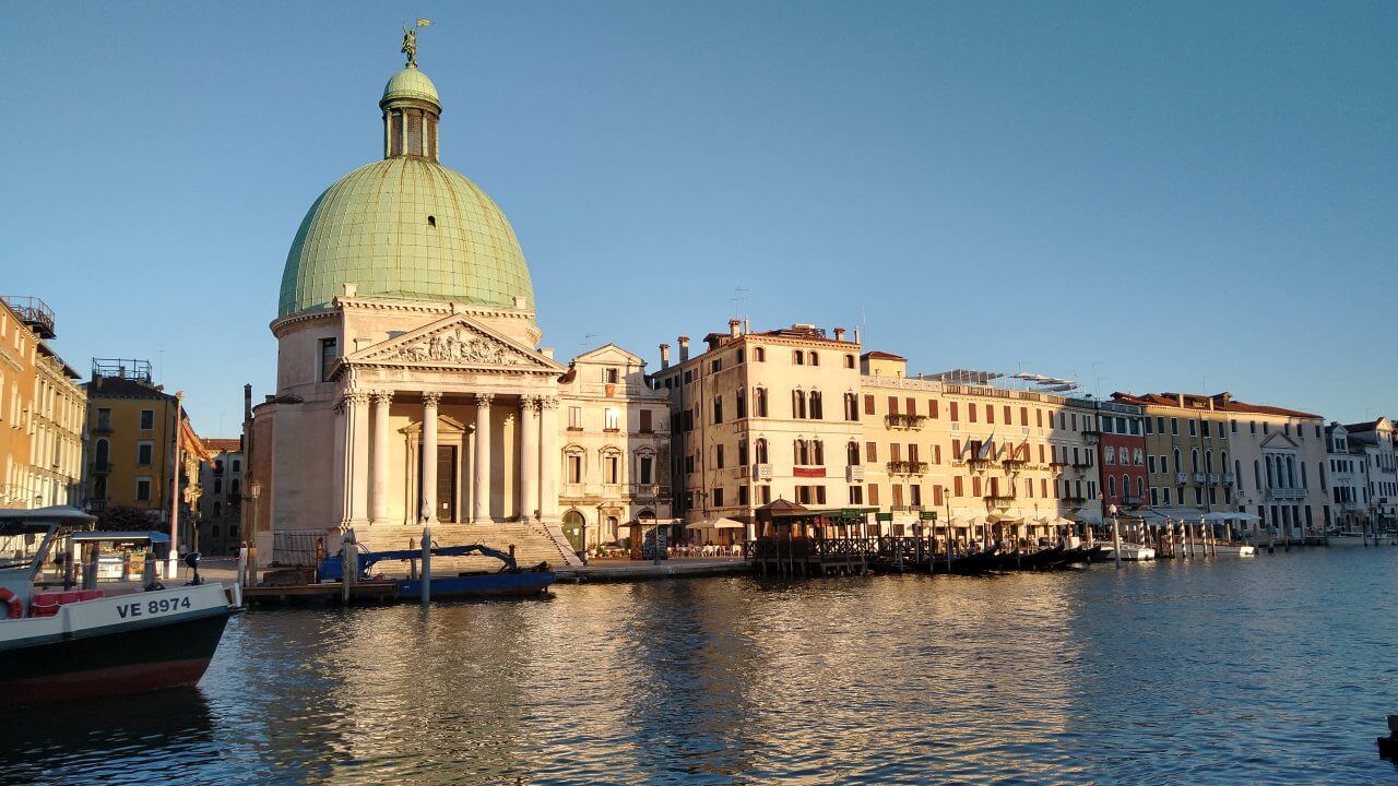 Nach dem spartanischsten Frühstück aller Zeiten (wir wissen ja inzwischen, dass den Italienern da Frühstück nicht so wichtig ist, aber abgepackter Zwieback und ein Getränk geht gar nicht!) Dafür geht es dann den ganzen Tag wieder überwiegend abwärts. Schon am frühen Mittag erreichen wir die schöne Stadt Treviso mit ihren vielen Kirchen, Museen, dem Dom, Cafés, Bars und netten Geschäften. Da wir hier auf unserer ersten Alpenüberquerung 2018 übernachtet haben, bleiben wir dieses Mal nicht länger und radeln nach einer kleinen Pause direkt weiter. Durch viele kleine Dörfer auf gut ausgebauten Radwegen erreichen wir am späten Nachmittag Mestre. In Mestre ist mit dem Fahrrad für uns Endstation, da Venedig für Fahrräder zum einen verboten und zum anderen auch gar nicht machbar ist. So buchen wir nach 96 gefahrenen Kilometern für drei Nächte im Hotel „Paris“ (48,-€) direkt am Bahnhof in Mestre ein Zimmer. Bevor es nun endlich in die Lagunenstadt per Bus geht, essen wir noch schnell eine Pizza in einem der Straßen Cafés. Und dann stehen wir endlich da und staunen – Bella Venezia!