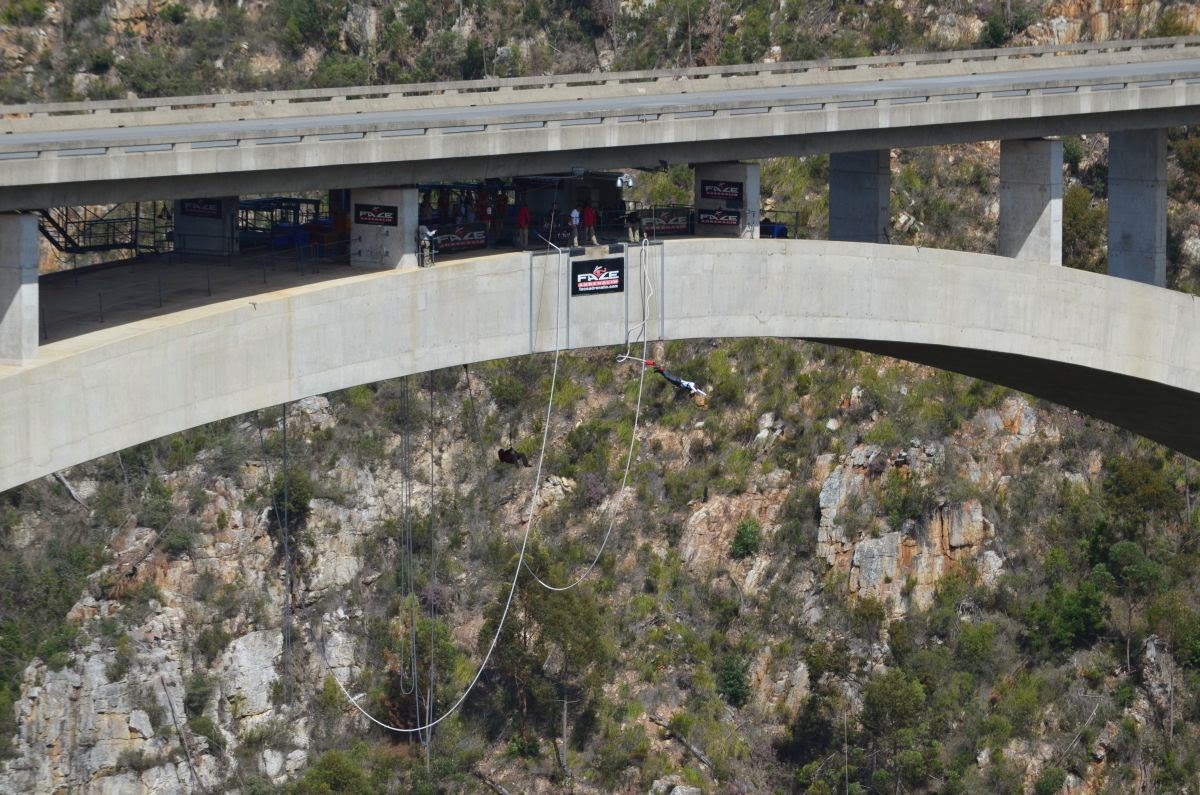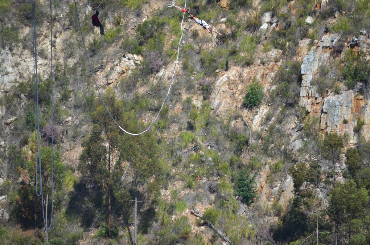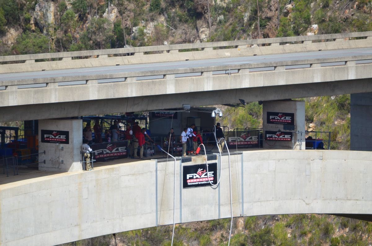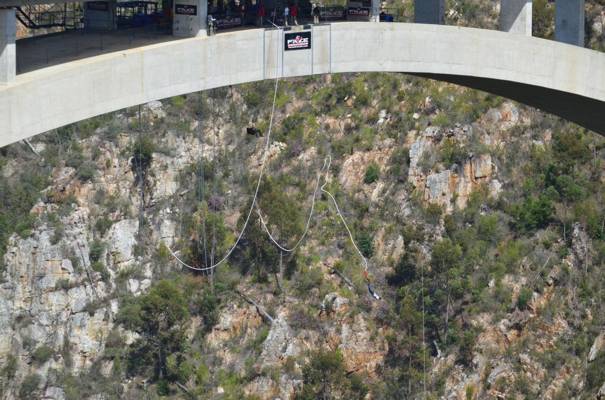 Die N2 überquert auf ihrem Weg auf einer 460 m langen und 216 m hohen Brücke den Fluss Bloukrans. Wem der Blick hinunter nicht genügt, kann hier einen der längsten Bungeejumps der Welt absolvieren. Wir begnügen uns allerdings mit dem Zusehen.