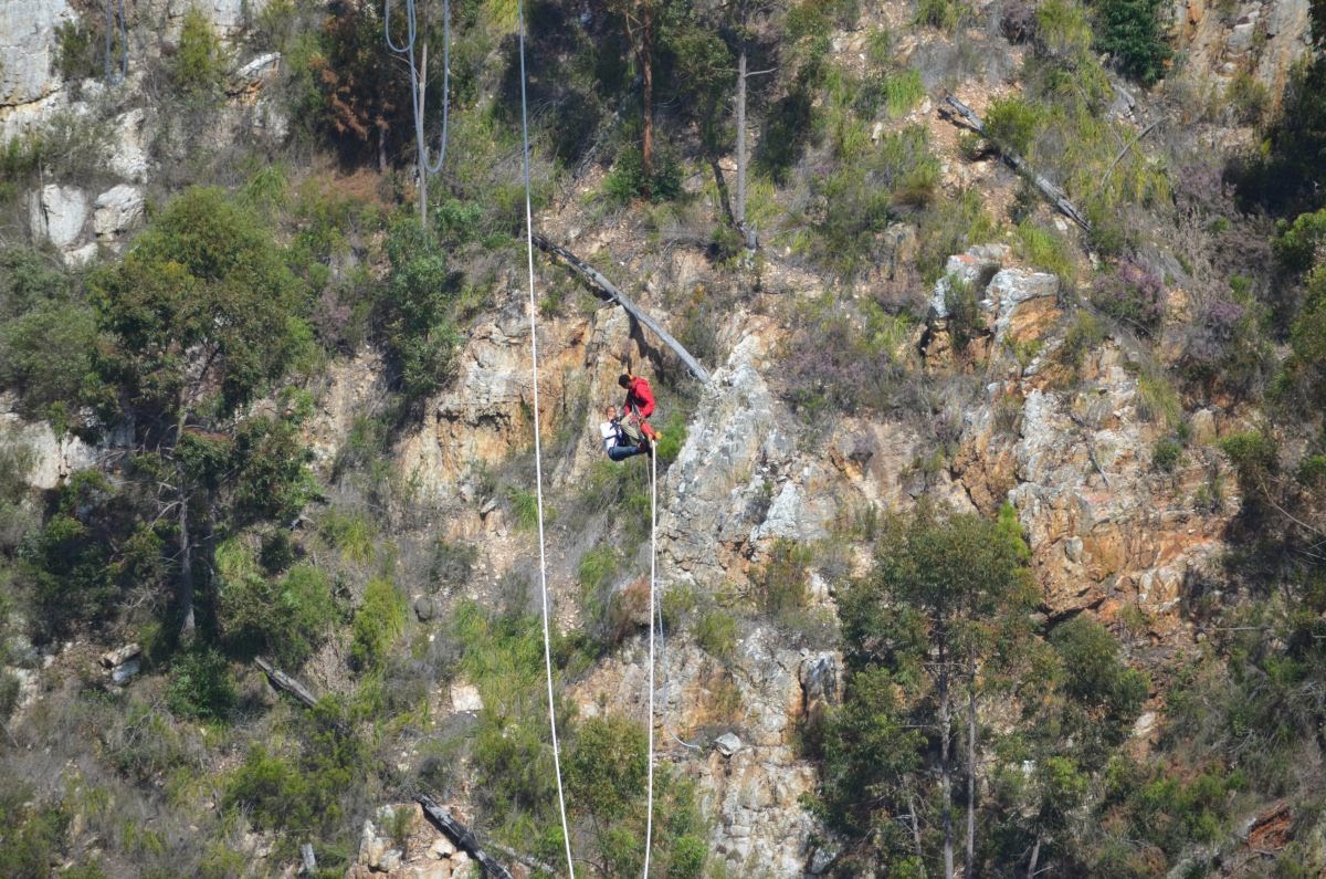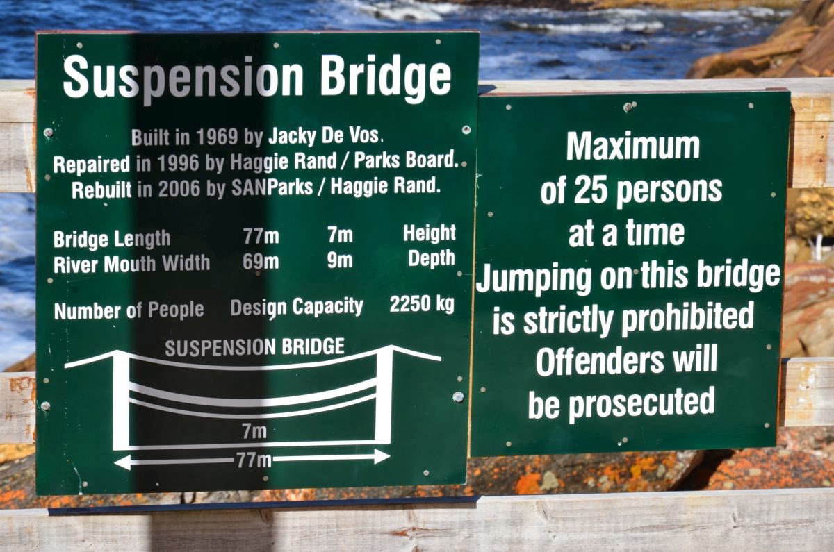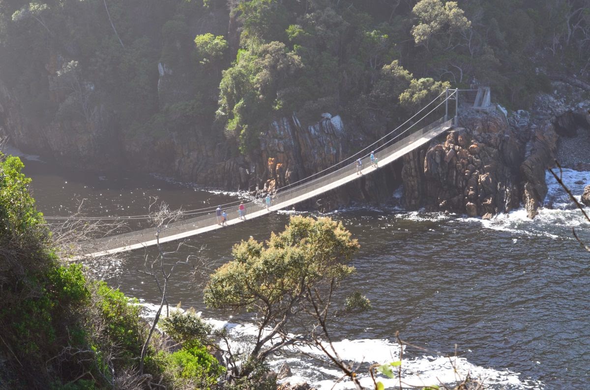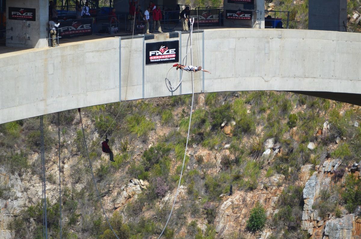 Die N2 überquert auf ihrem Weg auf einer 460 m langen und 216 m hohen Brücke den Fluss Bloukrans. Wem der Blick hinunter nicht genügt, kann hier einen der längsten Bungeejumps der Welt absolvieren. Wir begnügen uns allerdings mit dem Zusehen.