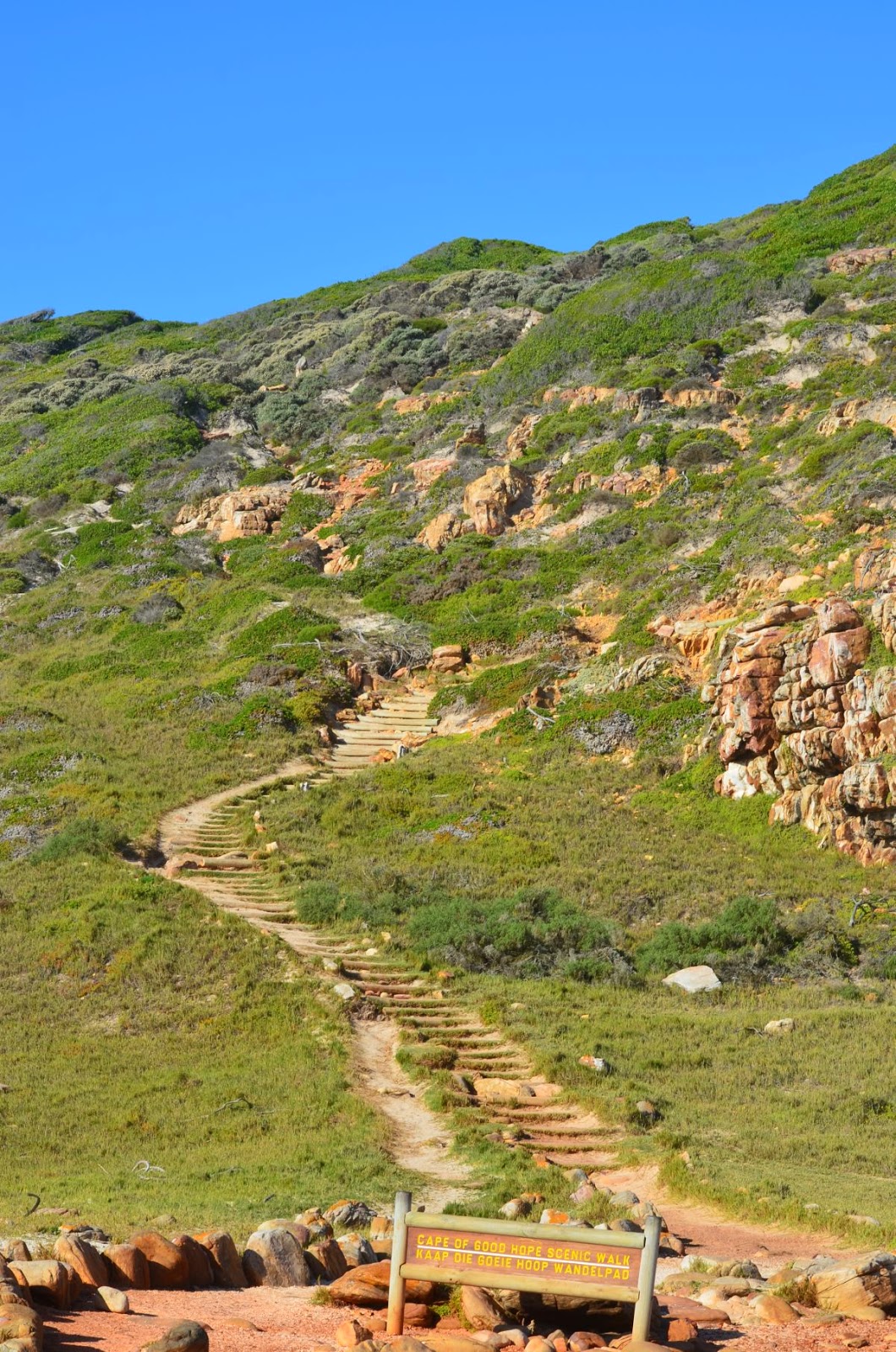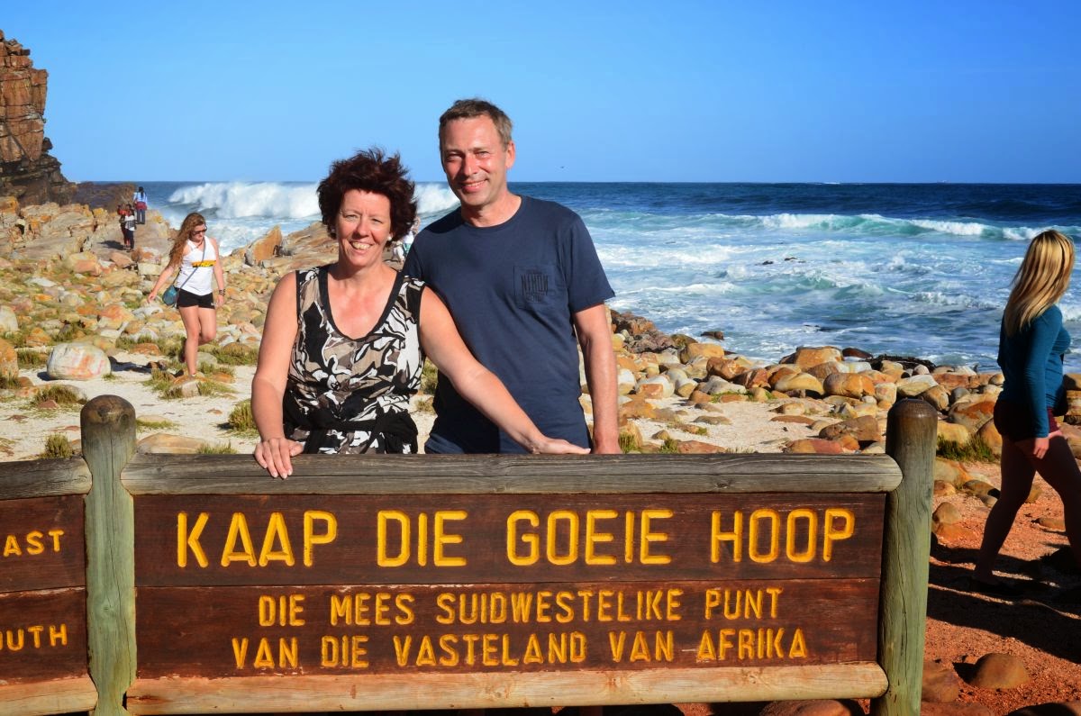 Von hier oben sehen wir herunter auf das Kap der Guten Hoffnung und machen uns auf den Weg dorthin. Hier stehen wir nun auf einem der bedeutsamsten Flecken der Erde.