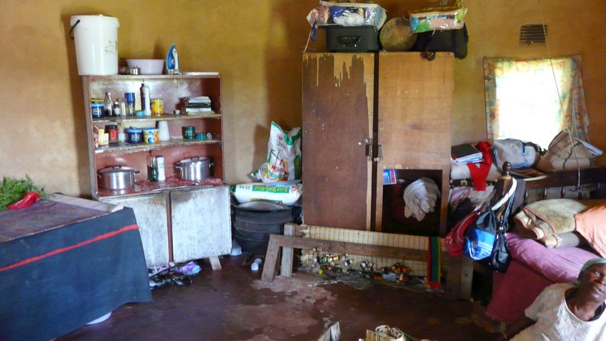 Weiter fahren wir zu einer alten Dame, die uns in ihre Hütte einlädt, in der sie mit weiteren acht Personen ihrer Familie wohnt und schläft – zwei Betten sind vorhanden, alle anderen müssen auf Matten auf dem Fußboden schlafen.