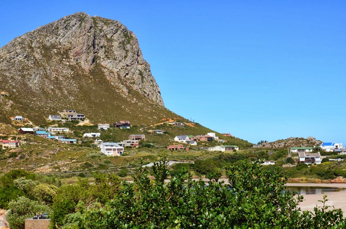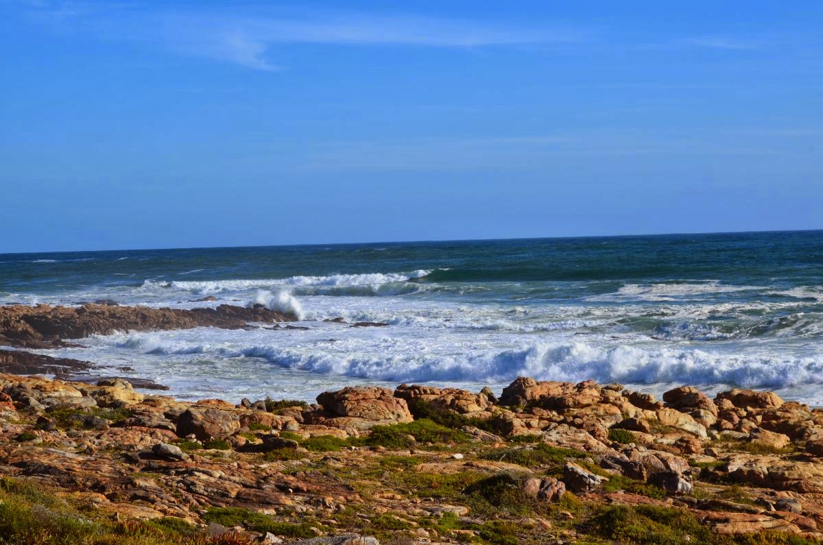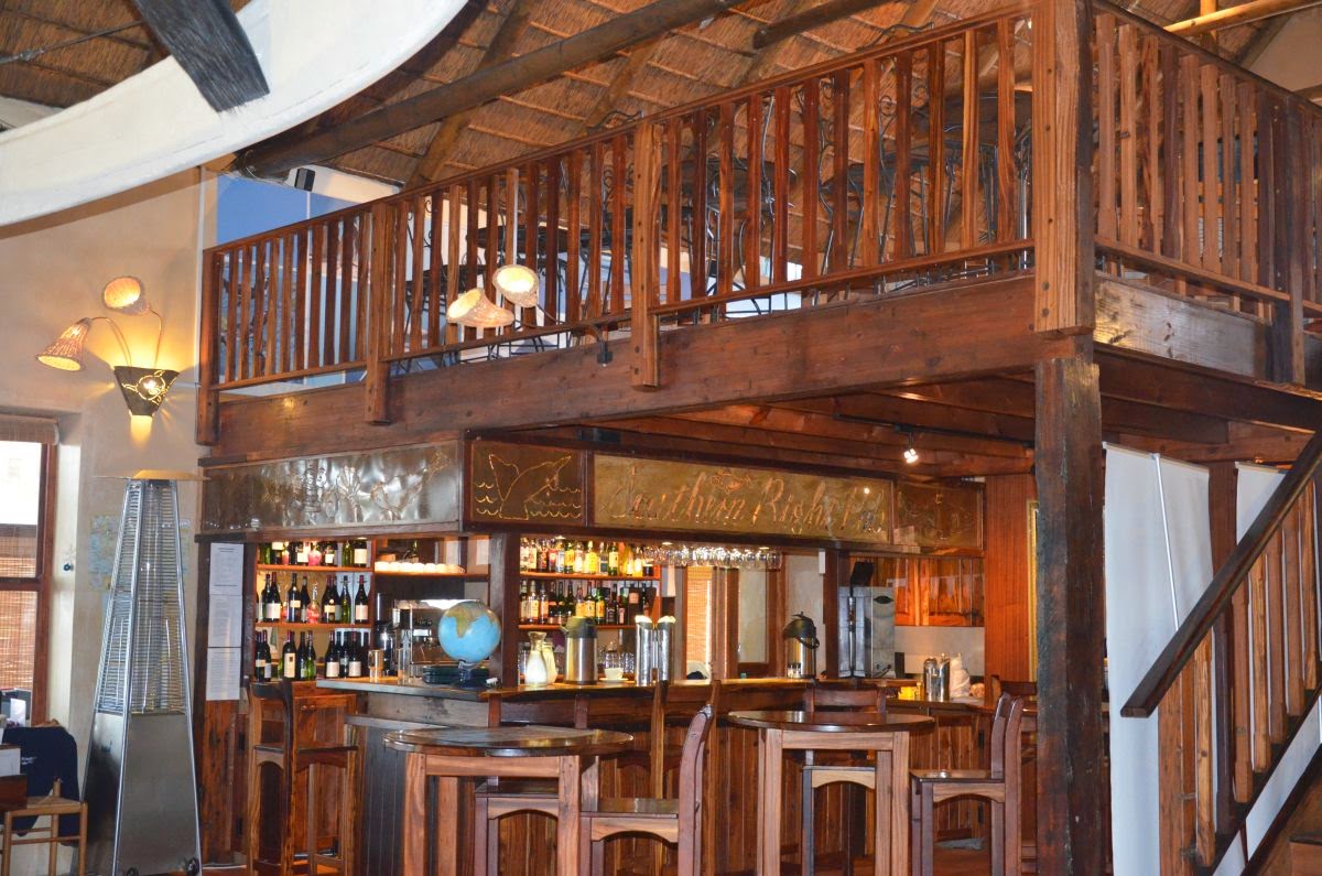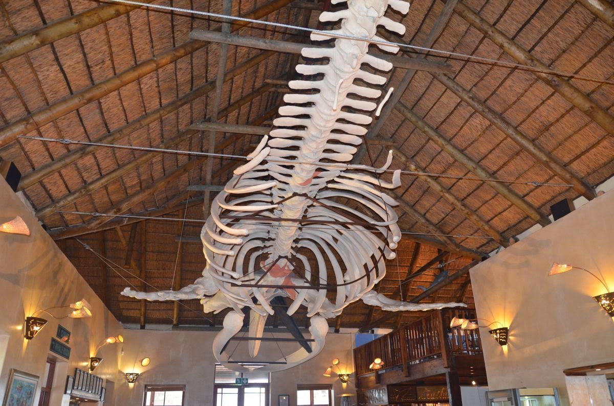 Zum Frühstück finden wir uns wieder im gegenüberliegenden Restaurant White Shark ein. Hier zeugt ein Skelett eines riesigen Wales unter der Decke von der Größe dieser Tiere und macht uns echt neugierig, einmal zu einer anderen Jahreszeit hierher zu kommen. Denn von Juni bis Dezember ziehen die Wale jedes Jahr in die Walker Bay, um ihre Jungen zur Welt zu bringen und sich zu paaren. Der Ort Hermanus, nur wenige Kilometer von hier entfernt, zählt zu den besten Walbeobachtungsplätzen der Welt. Hier fallen die Klippen so steil in den kristallklaren Ozean ab, dass man den Walen angeblich fast den Rücken kraulen kann.