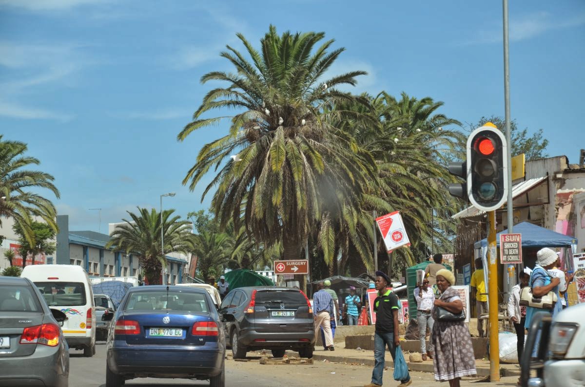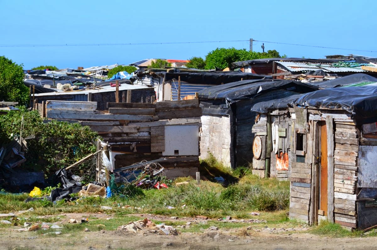 Auf dem Weg hierher erleben wir bedrückend die absolut krassen Unterschiede unserer Gesellschaft. Uns begegnen nicht nur einfache afrikanische Unterkünfte, wie sie bisher gesehen haben, nein, regelrecht heruntergekommene Slums. Und keine drei Kilometer weiter stehen die Nobelherbergen der überwiegend Weißen mit Golfplatz vor der Tür, so wie man es vielleicht von Sylt kennt, und die Nelly führt die Hunde Gassi.
