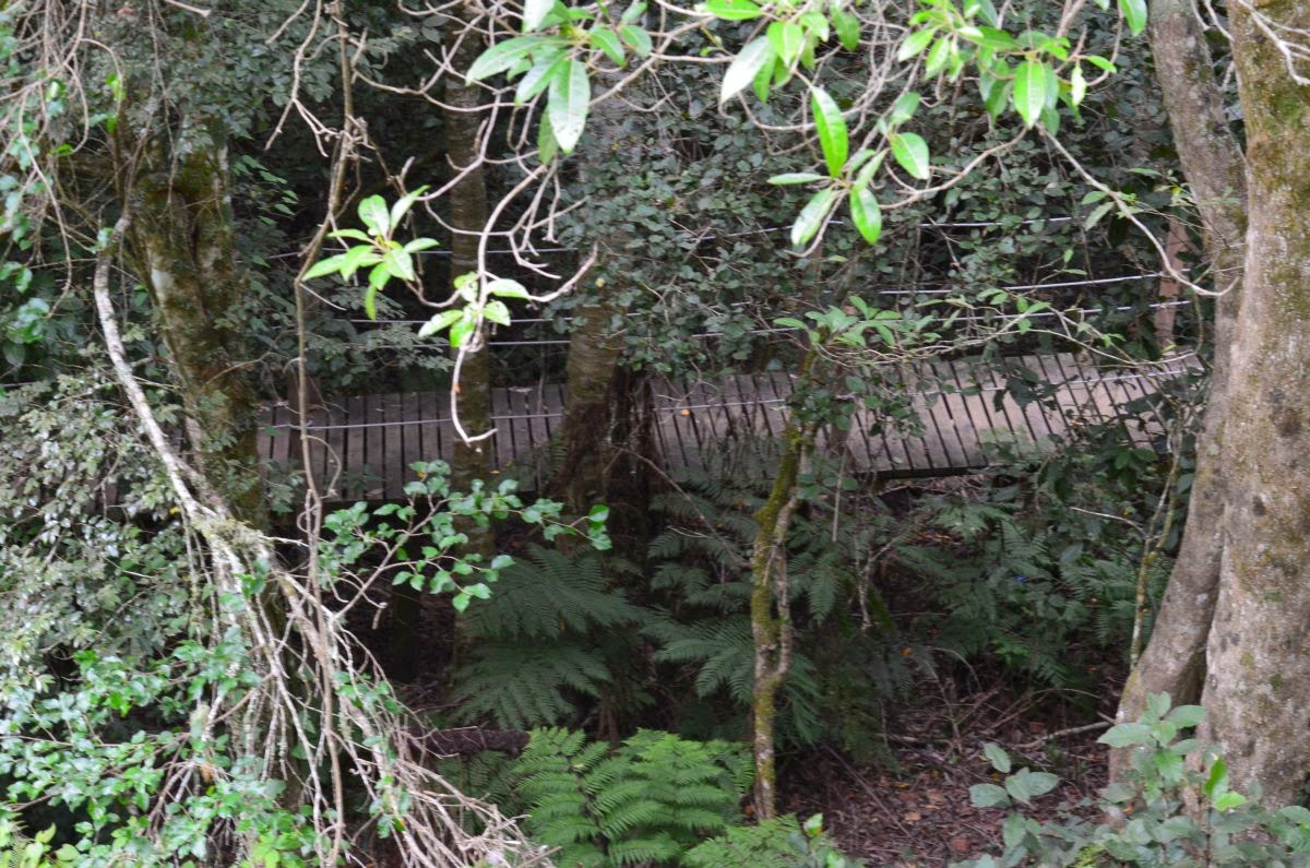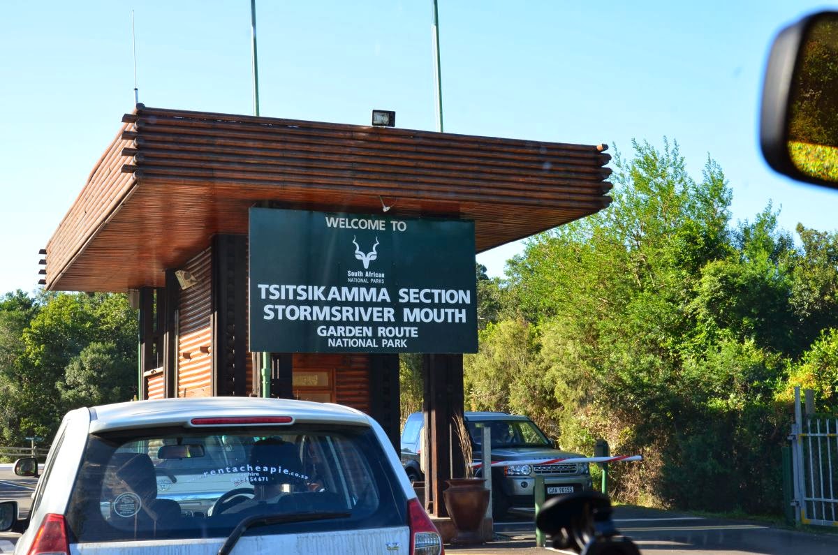 Wir fahren von unserer super schönen Unterkunft die etwa zehn Kilometer zum 1964 eröffneten Nationalpark Tsitsikamma. Er umfasst einen 80 km langen Streifen entlang der Küste mit felsigen und sandigen Abschnitten. Der Name Tsitsikamma stammt aus der Khoikhoi-Sprache und bedeutet klares Wasser. Der dichte, mit meterhohen Farnen, Orchideen und bis 40 Meter hohen Bäumen durchsetzte Wald ist einer der letzten Urwälder Südafrikas. Es finden sich hier Affen, Antilopen, besondere Vögel und häufig sind Delfine und Wale vor der Küste zu sehen.