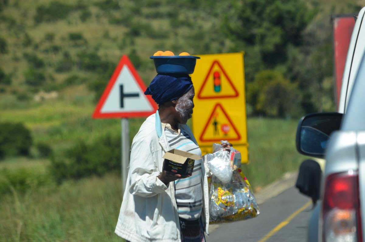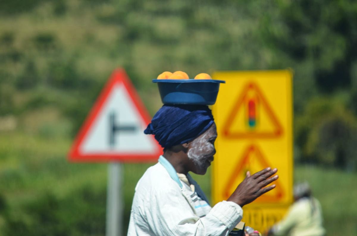 Wir fahren weiter durch ein Afrika, wie wir es uns vielleicht noch aus alten Schulbüchern vorstellen. Selbst von den Straßen sind wir angenehm überrascht. Es wird zwar viel gebaut, aber irgendwie geht es trotz der Baustellen immer zügig voran. Anwohner nutzen die Baustellenstopps und verkaufen an die Autofahrer Obst und Getränke. Man sollte jederzeit bremsbereit sein, denn selbst wo Tempo 120 erlaubt ist, laufen Kühe und Ziegen auf dem Seitenstreifen und auch über die Fahrbahn.