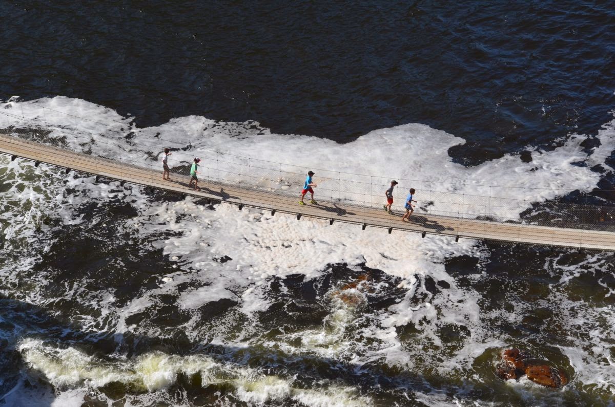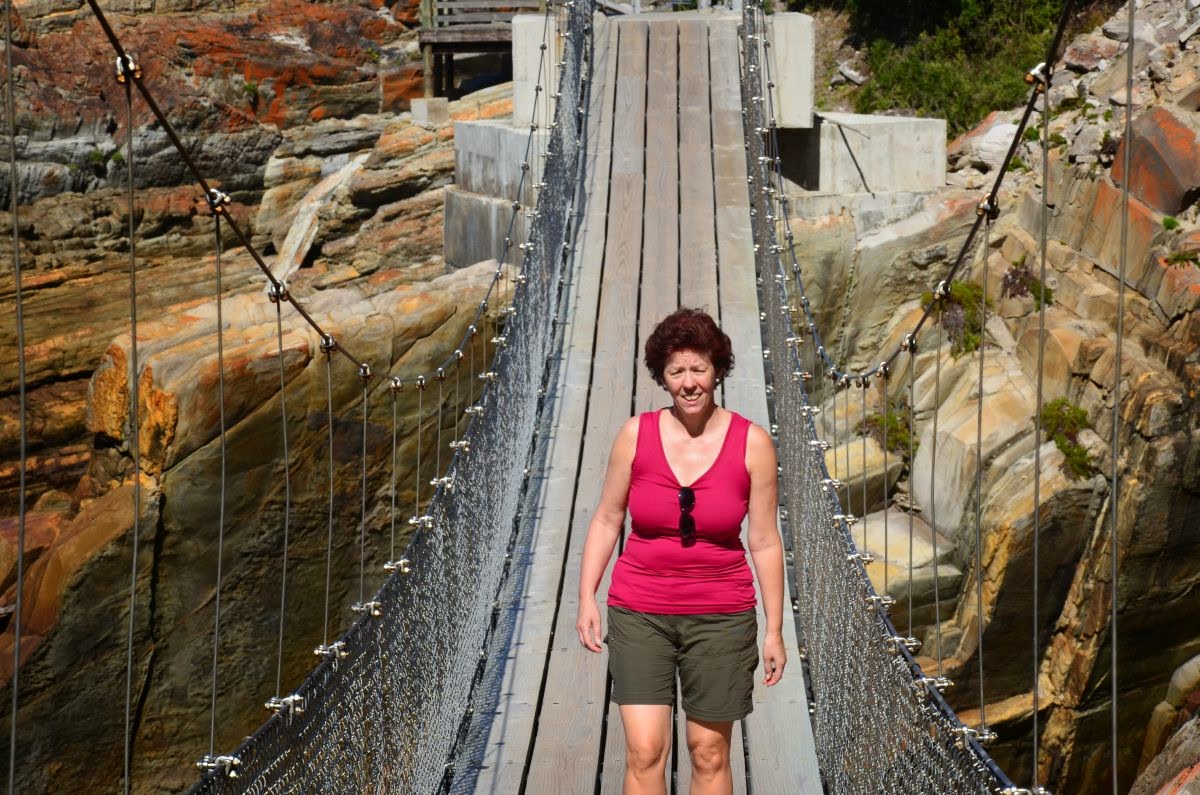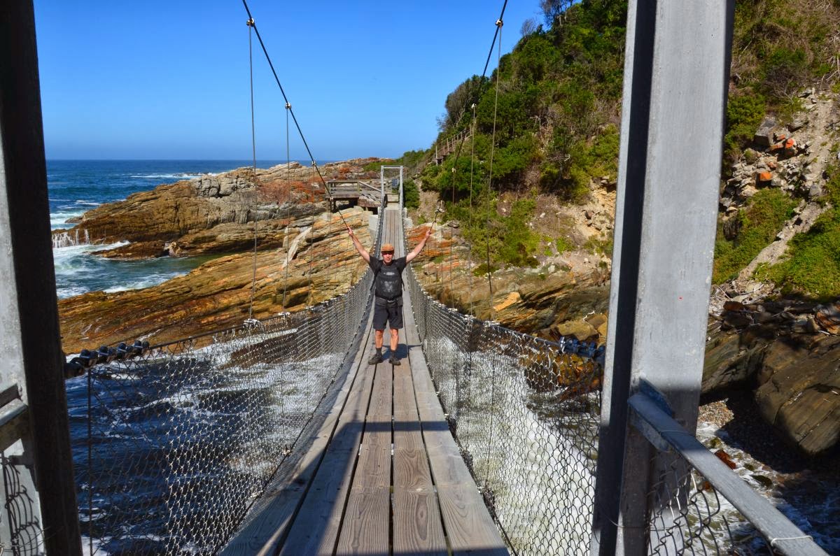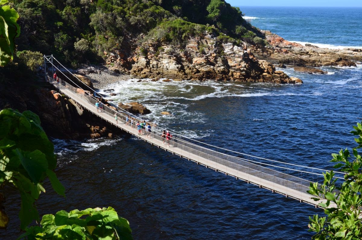 Am Storms River Mouth Restcamp beginnen wir eine kurze Wanderung um über einen Plankenweg zur Mündung des Storms River und über die Hängebrücke zu einem fantastischen Aussichtspunkt zu gehen.