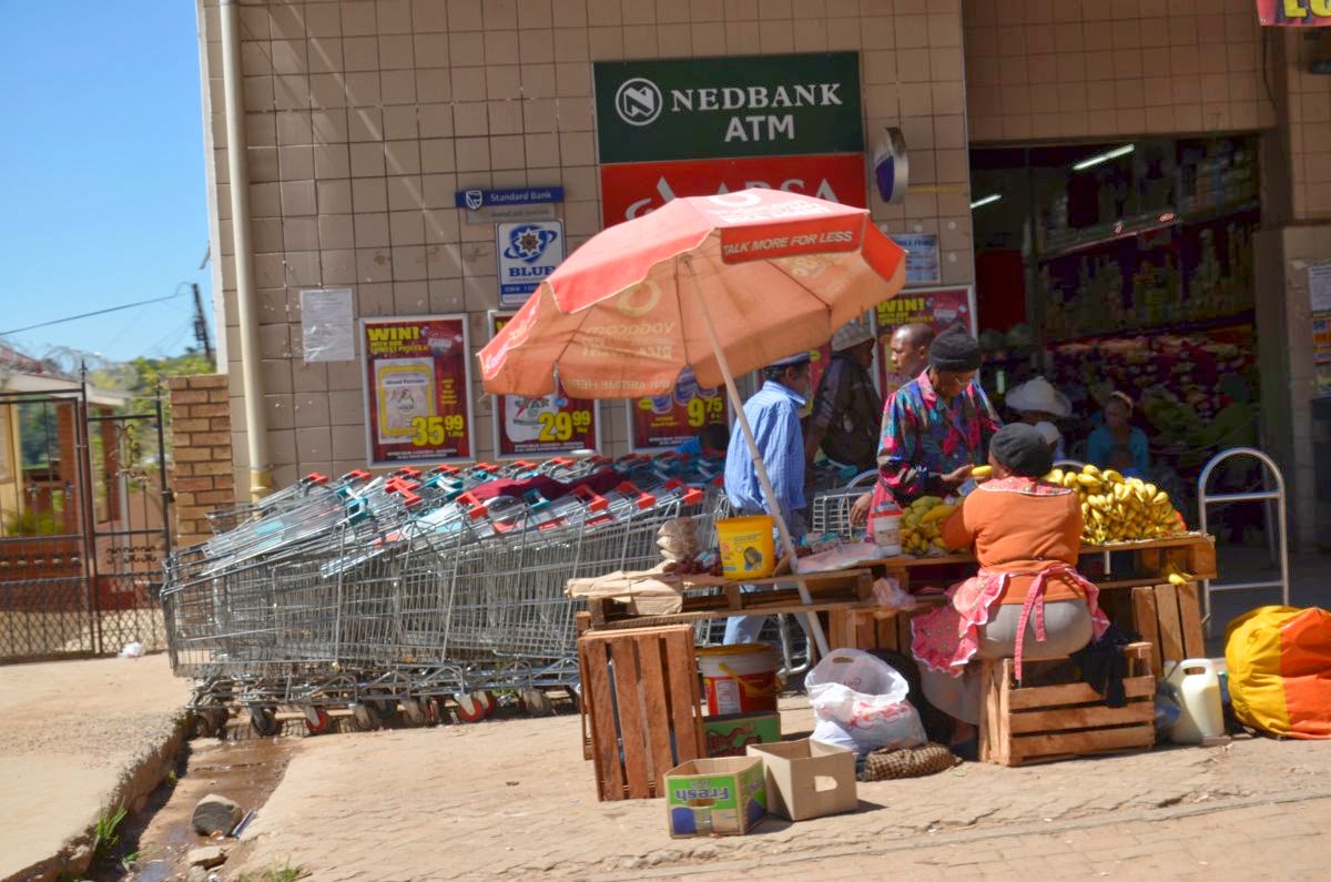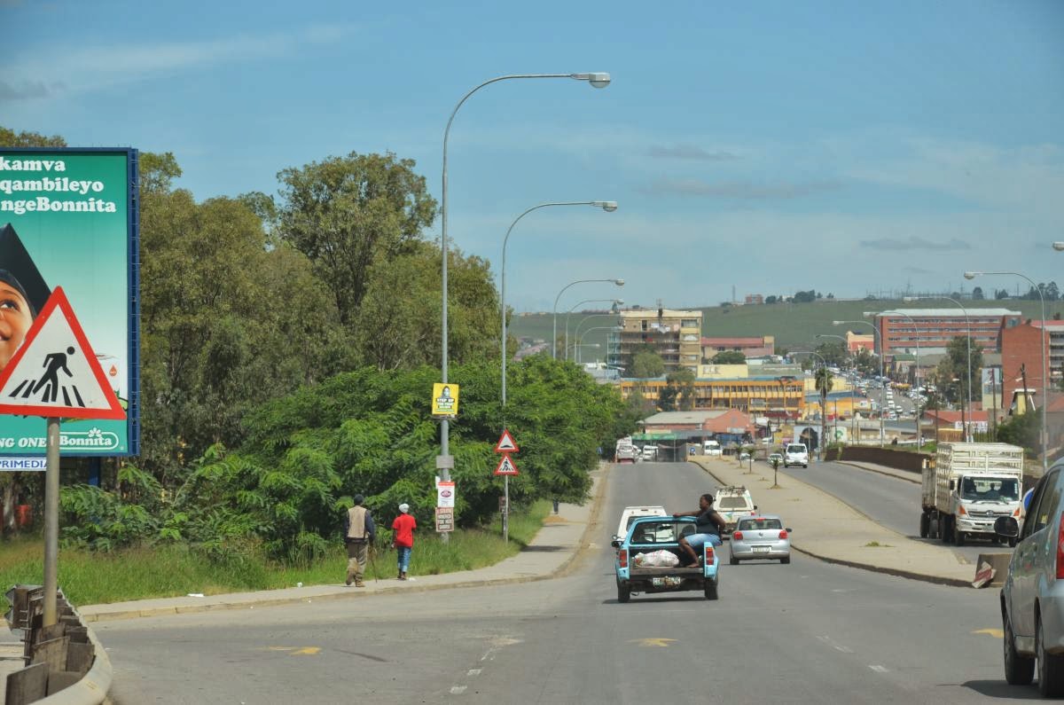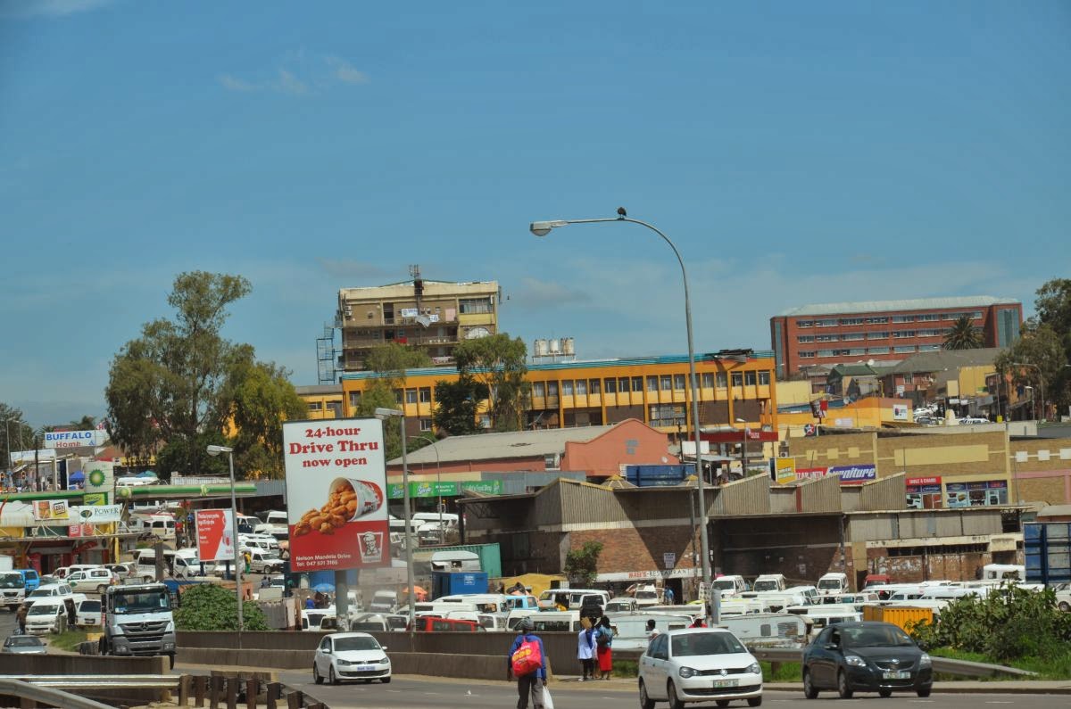 In Mthatha, der ehemaligen Hauptstadt der Transkei mit 86.000 Einwohnern und einer der führenden Universitäten des Landes steigen wir dann zum ersten Mal aus. Hier aus dieser Umgebung stammt der große Mann der Landes Nelson Mandela. Das repräsentative Verwaltungsgebäude Bhonga beherbergt das Nelson Mandela National Museum. Es ist zur Zeit leider geschlossen. So nutzen wir den Stopp beim gegenüberliegenden McDonalds für eine kurze Pause und stellen auch hier wieder fest, dass wir die einzigen Weißen weit und breit sind. Trotzdem haben wir uns hier in keinster Weise unwohl gefühlt.