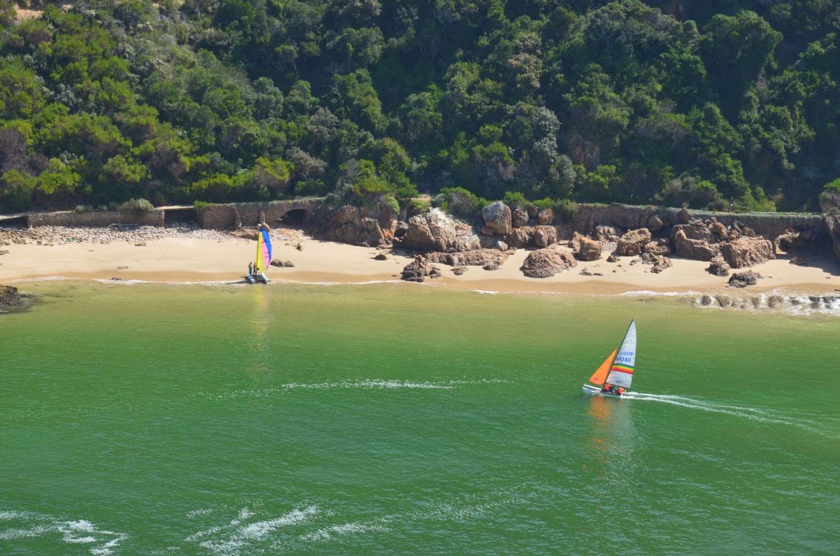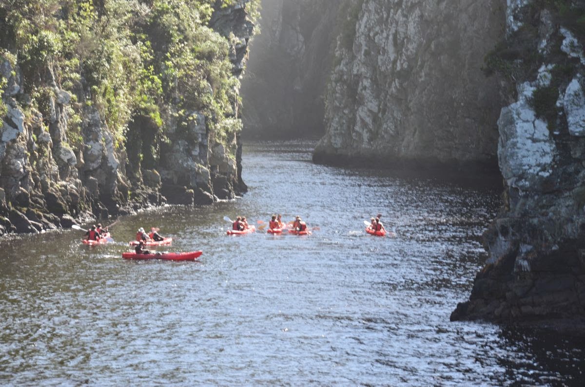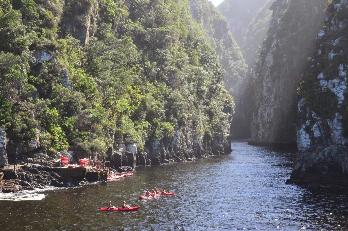 Unter uns bereiten sich einige Kanuten auf ihren Trip über den River vor. Der Tsitsikamma NP bietet Aktivurlaubern vielerlei Möglichkeiten im und am Wasser und an Land.