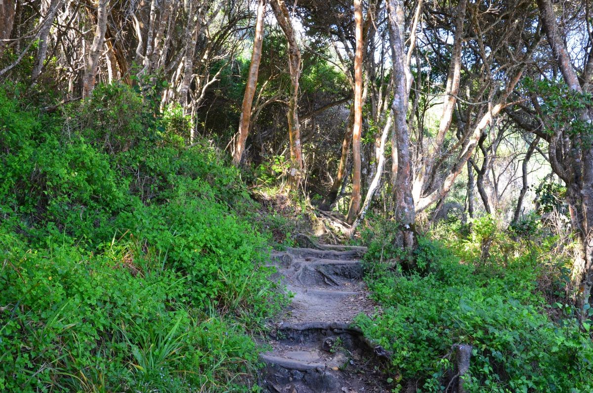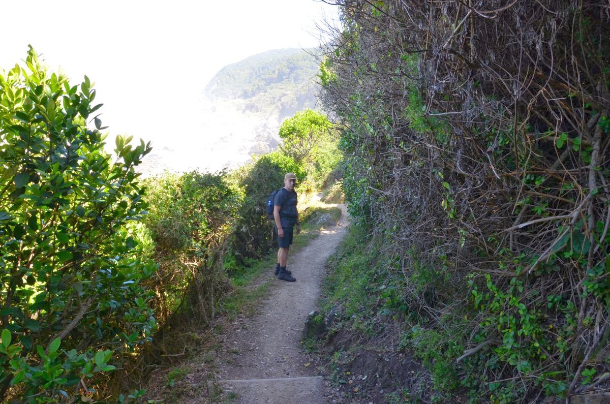 Berühmtester Wanderweg in diesem Bereich des Nationalparks ist der Otter Trail mit etwa 50 km Länge und dauert fünf Tage. Er darf nur nach Voranmeldung begangen werden, die etwa ein Jahr im Voraus erfolgen muss. Ein kurzer Teilabschnitt ist jedoch für Tageswanderer frei zugänglich. Und so begeben wir uns auf den Weg etwa 6,5 km zu einem Wasserfall. Es geht über Stock und Stein, durch Wald und Klippen auf einen abenteuerlichen Weg. Wir genießen fantastische Ausblicke auf das Meer und sind gleichzeitig im Urwald.