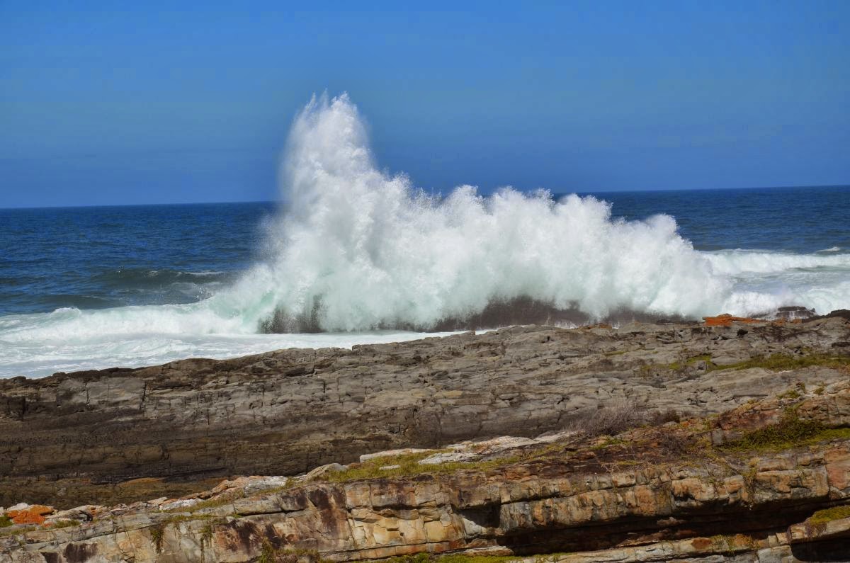 Einen kurzen Zwischenstopp legen wir am Cape von St. Francis Bay ein. Hier am Cape tosen die Wellen ebenso, nur branden sie hier nicht an den Strand sondern auf die Felsen und machen jegliches Schwimmen unmöglich. Wildromantisch sieht es hier aus.