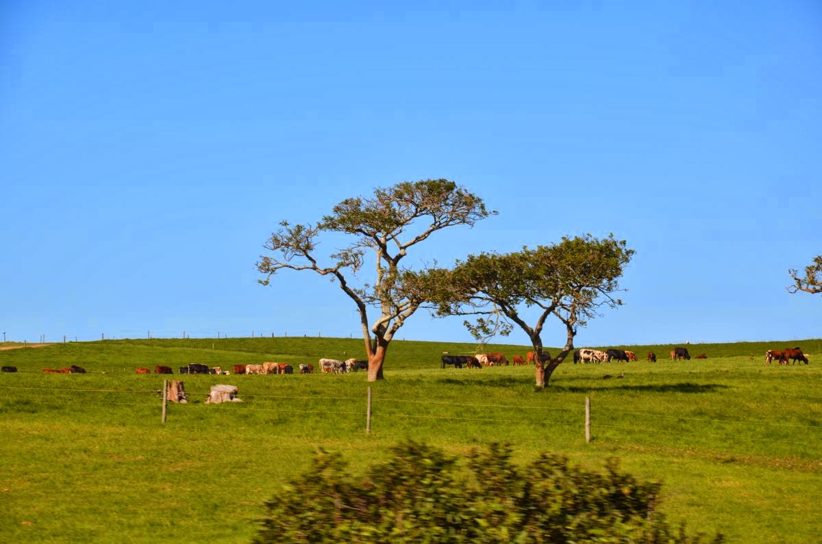 East London ist eine Industriestadt, die jedoch nicht viel weiteres Sehenswertes hergibt. Auf der folgenden Strecke erleben wir, wie sich die Landschaft wandelt. Von dem einfachen Leben der Afrikaner in der Transkei bis hin zur modernen Landwirtschaft. Hunderte von Tieren stehen hier in den Herden auf den Weiden, Dörfer lassen Strukturen erkennen mit Schulen und Kirchen. Und auch dem Tourismus kommt man hier mit Park- und Rastmöglichkeiten entgegen.