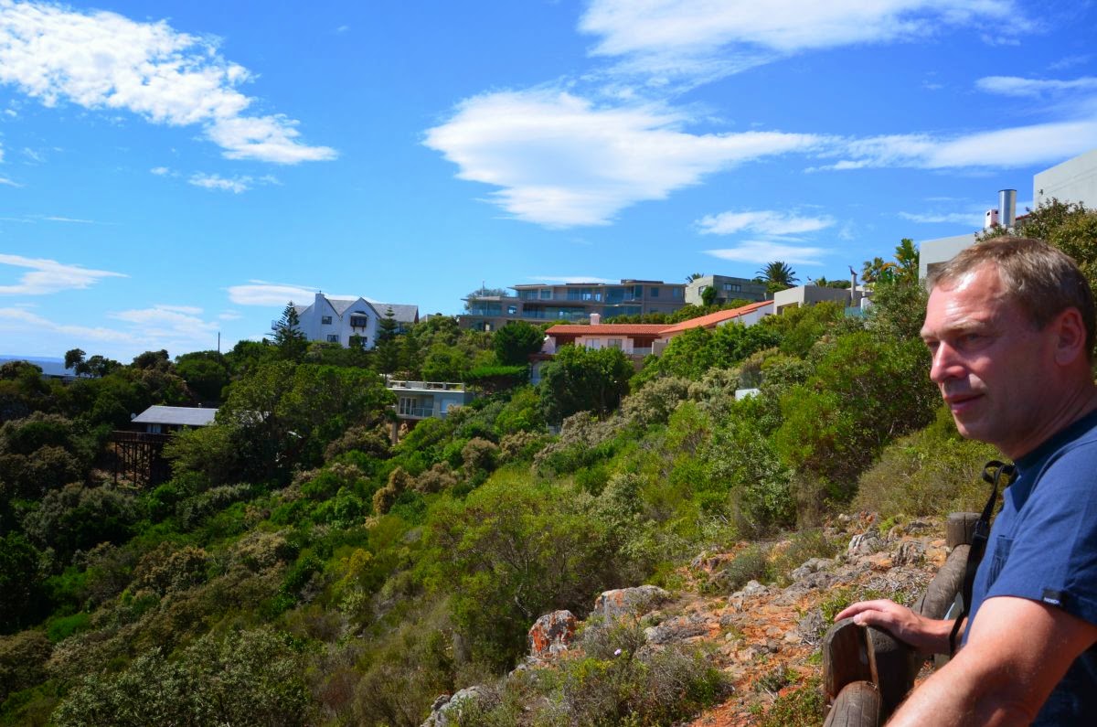 Heute Morgen erwartet uns diesiges und bewölktes Wetter. Jetzt bedauern wir es, dass wir gestern die Kamera doch nicht wieder mitgenommen haben, denn so haben wir keine Bilder von dieser tollen Küstenlandschaft. Es ist jedoch sehr warm und so frühstücken wir draußen auf der Terasse bei unseren Gastgebern, einem netten Schweizer Ehepaar, dass es vor sieben Jahren nach Südafrika verschlagen hat.