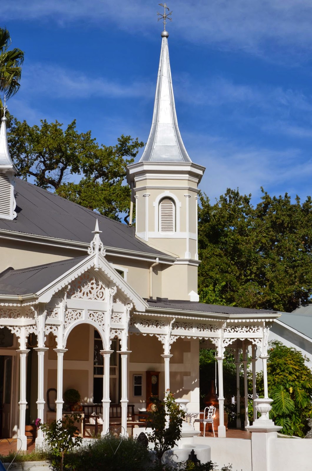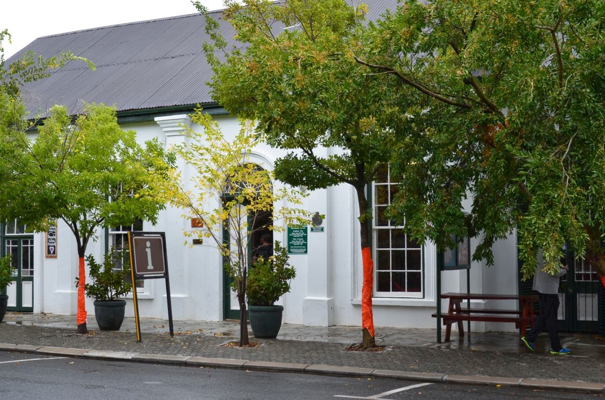 Nachdem es die ganze Nacht in Strömen gegossen hat, holt uns die Gastgeberin Elisabeth mit einem Regenschirm zum Breakfast ins Mainhouse ab (wir haben im Garden Cottage übernachtet). Das Albert Manor Guesthouse ist in der Tat ein uraltes charmantes Haus von etwa 1892, das samt seinem Mobiliar unter Denkmalschutz steht. Fotos gibt es auf Grund des immer noch fallenden Regens nur auf dem Link zum Haus.