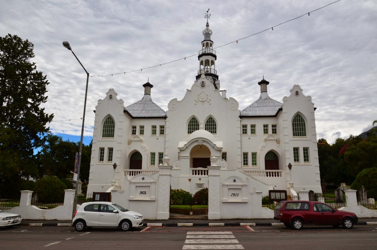 Dann erreichen wir Swellendam. Es liegt östlich von Kapstadt und war die dritte europäische Stadtgründung in Südafrika. Auch Swellendams Stadtbild ist geprägt von vielen kapholländischen und viktorianischen Gebäuden, so wie diese niederländisch reformierte Kirche aus dem Jahr 1910.