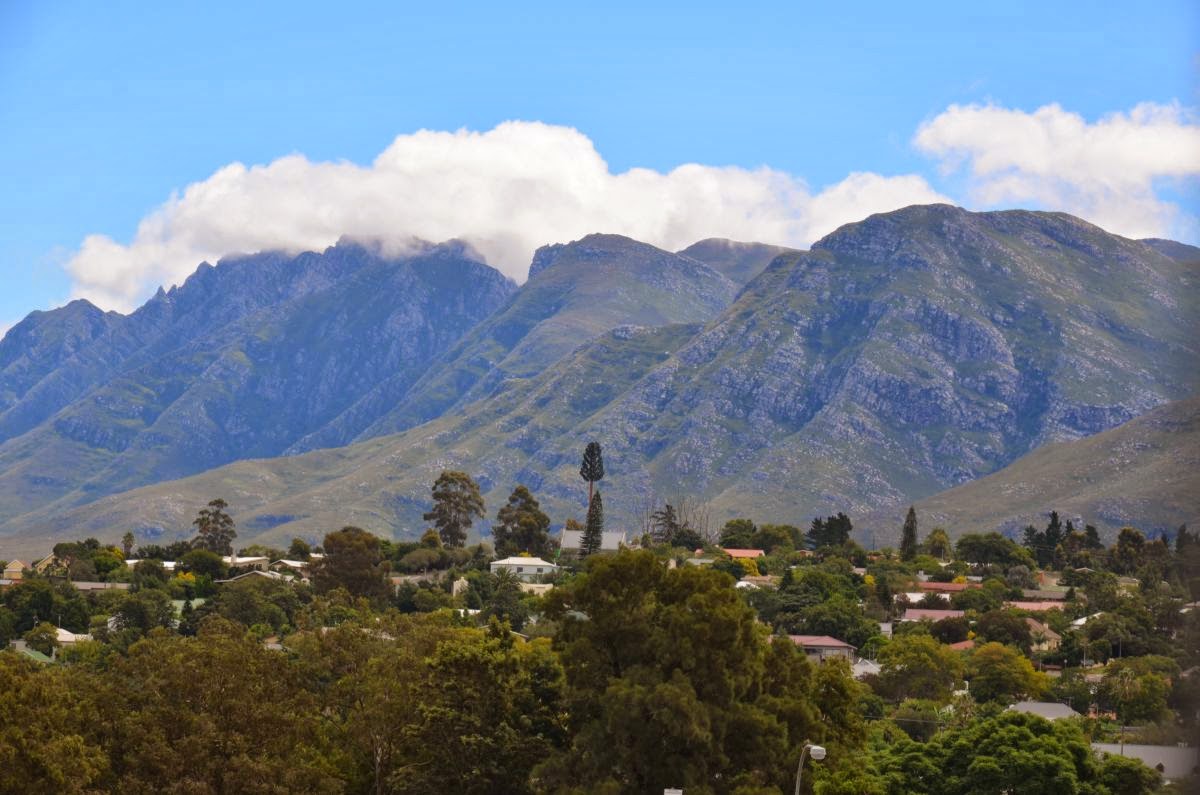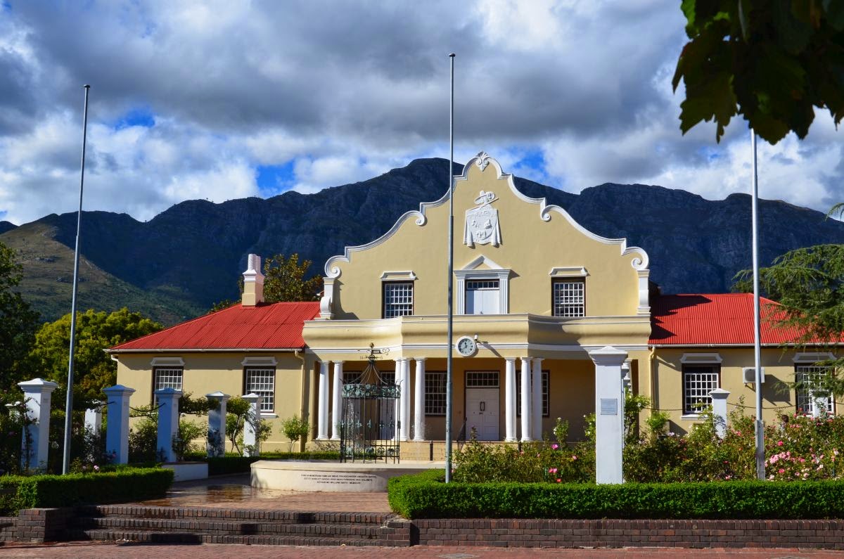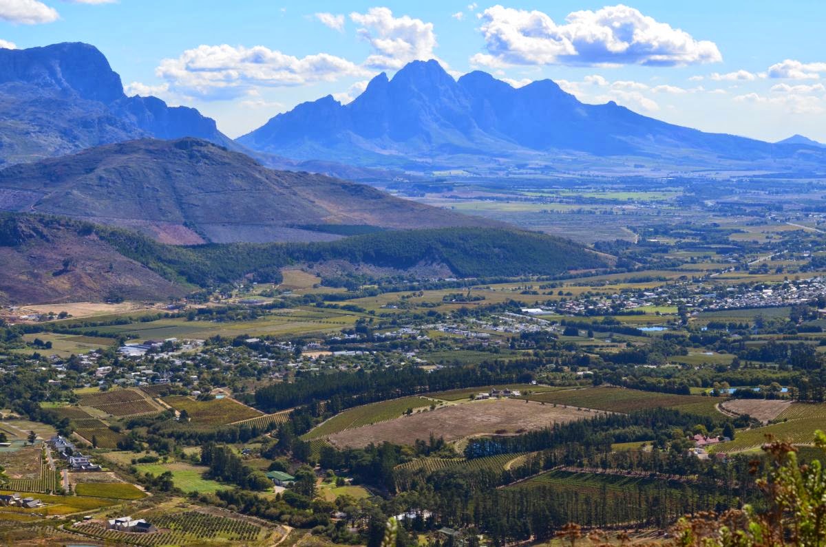 Oben am Pass angekommen geht es nun steil hinunter in den malerischen Weinort Franchhoek. Der Name bedeutet so viel wie „Franzosenwinkel“ oder „Franzosenecke“. Die Ortsgründung geht auf das Jahr 1688 zurück, als sich etwa 200 aus Frankreich ausgewanderte Hugenotten in dem Gebiet niederließen, das sie wohl an ihre Heimat in den französischen Voralpen erinnerte. Unter den französischen Einwanderern befanden sich auch etliche Winzer, die bald erkannten, dass sich die ihre Siedlung umgebenden Berge hervorragend zum Weinbau eignen würden. Aus den ersten Versuchen entwickelte sich bis heute eines der wichtigsten Weinanbaugebiete Südafrikas.