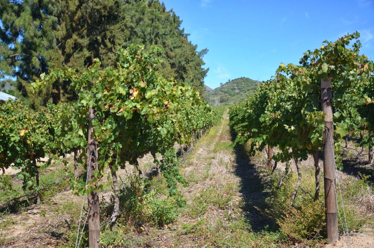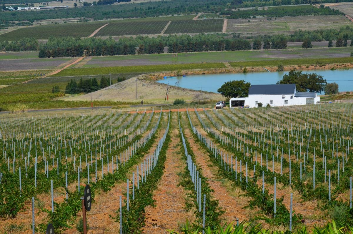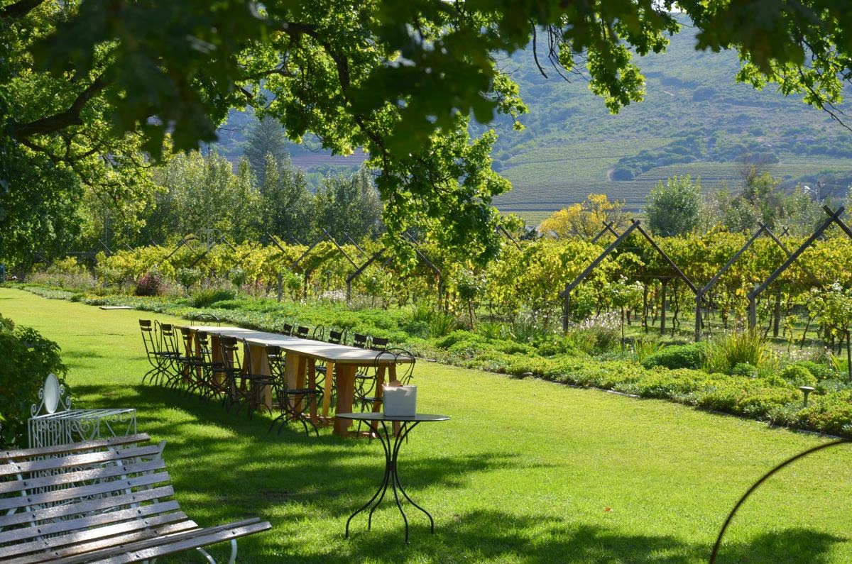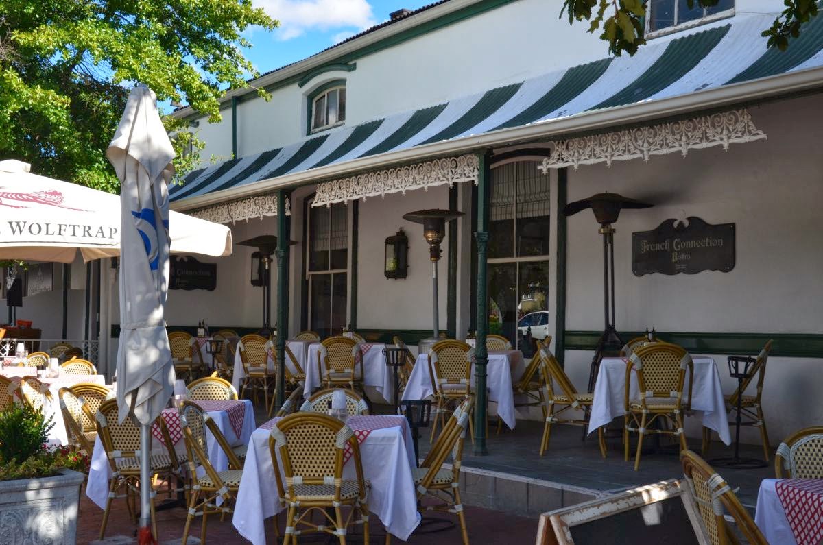 Oben am Pass angekommen geht es nun steil hinunter in den malerischen Weinort Franchhoek. Der Name bedeutet so viel wie „Franzosenwinkel“ oder „Franzosenecke“. Die Ortsgründung geht auf das Jahr 1688 zurück, als sich etwa 200 aus Frankreich ausgewanderte Hugenotten in dem Gebiet niederließen, das sie wohl an ihre Heimat in den französischen Voralpen erinnerte. Unter den französischen Einwanderern befanden sich auch etliche Winzer, die bald erkannten, dass sich die ihre Siedlung umgebenden Berge hervorragend zum Weinbau eignen würden. Aus den ersten Versuchen entwickelte sich bis heute eines der wichtigsten Weinanbaugebiete Südafrikas.