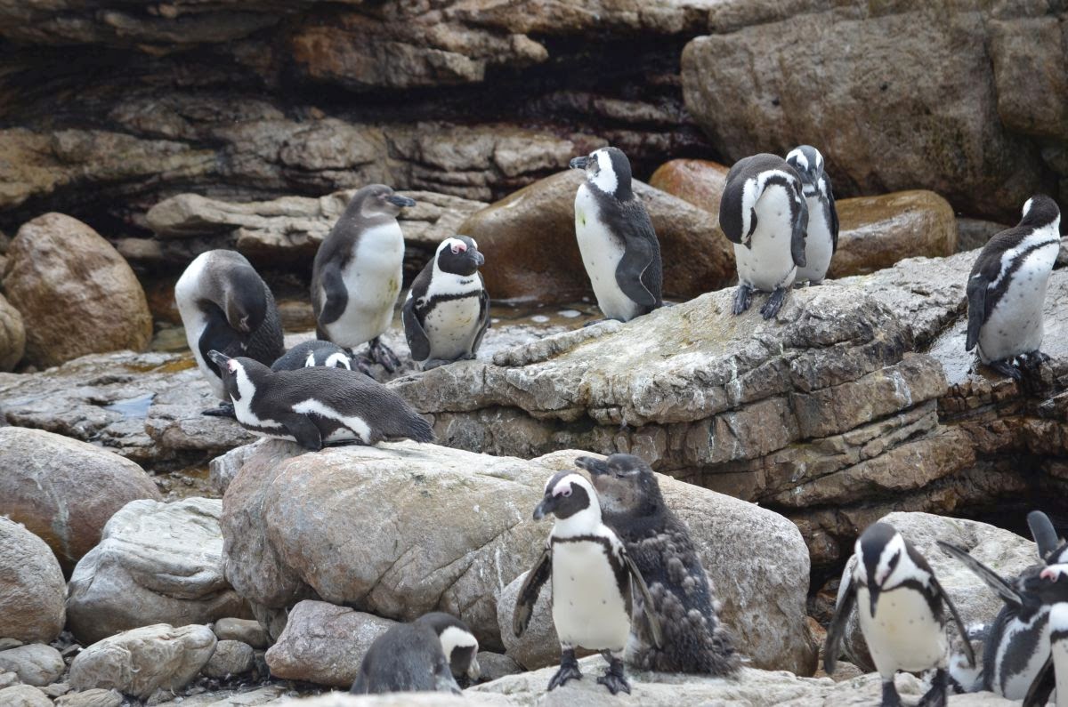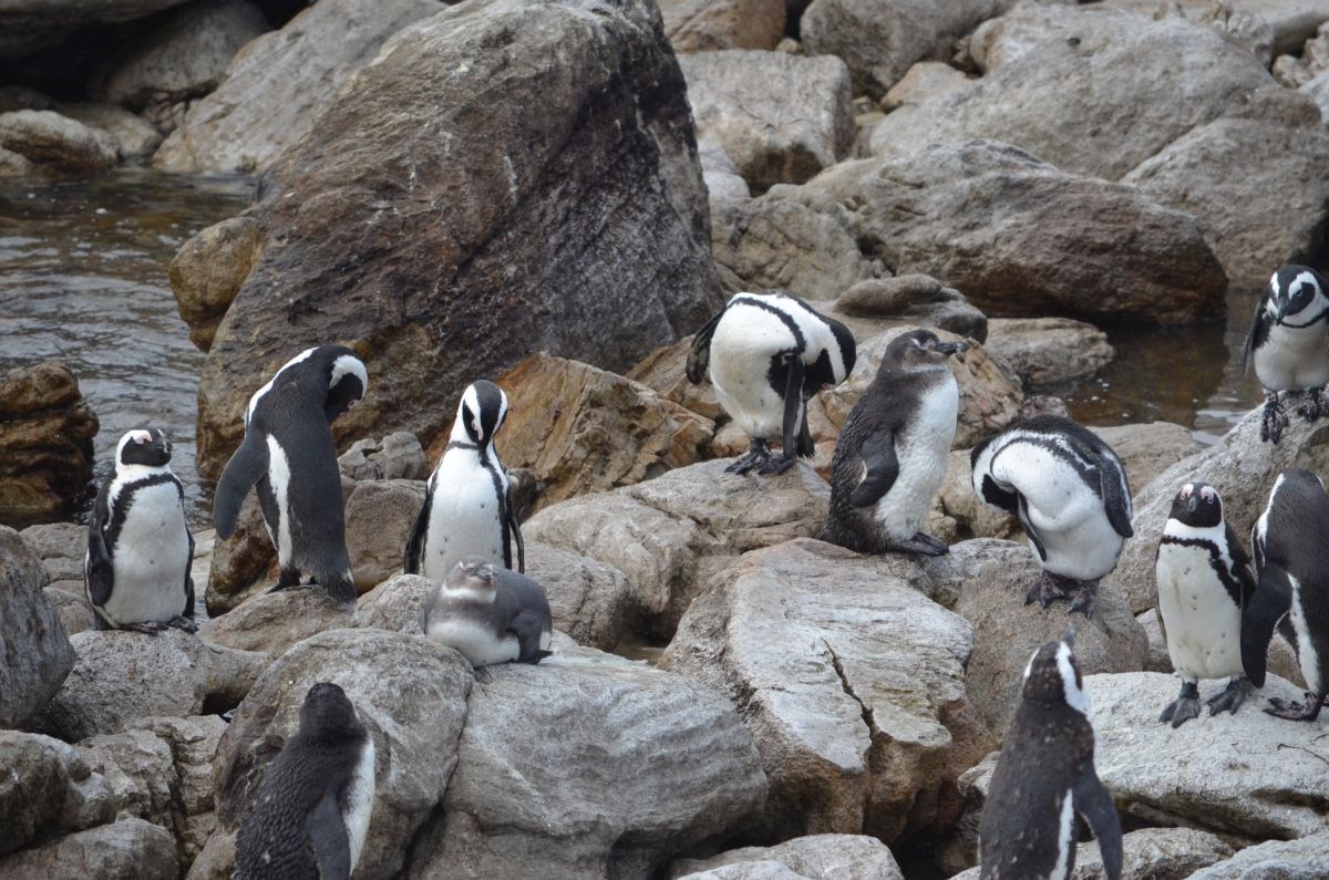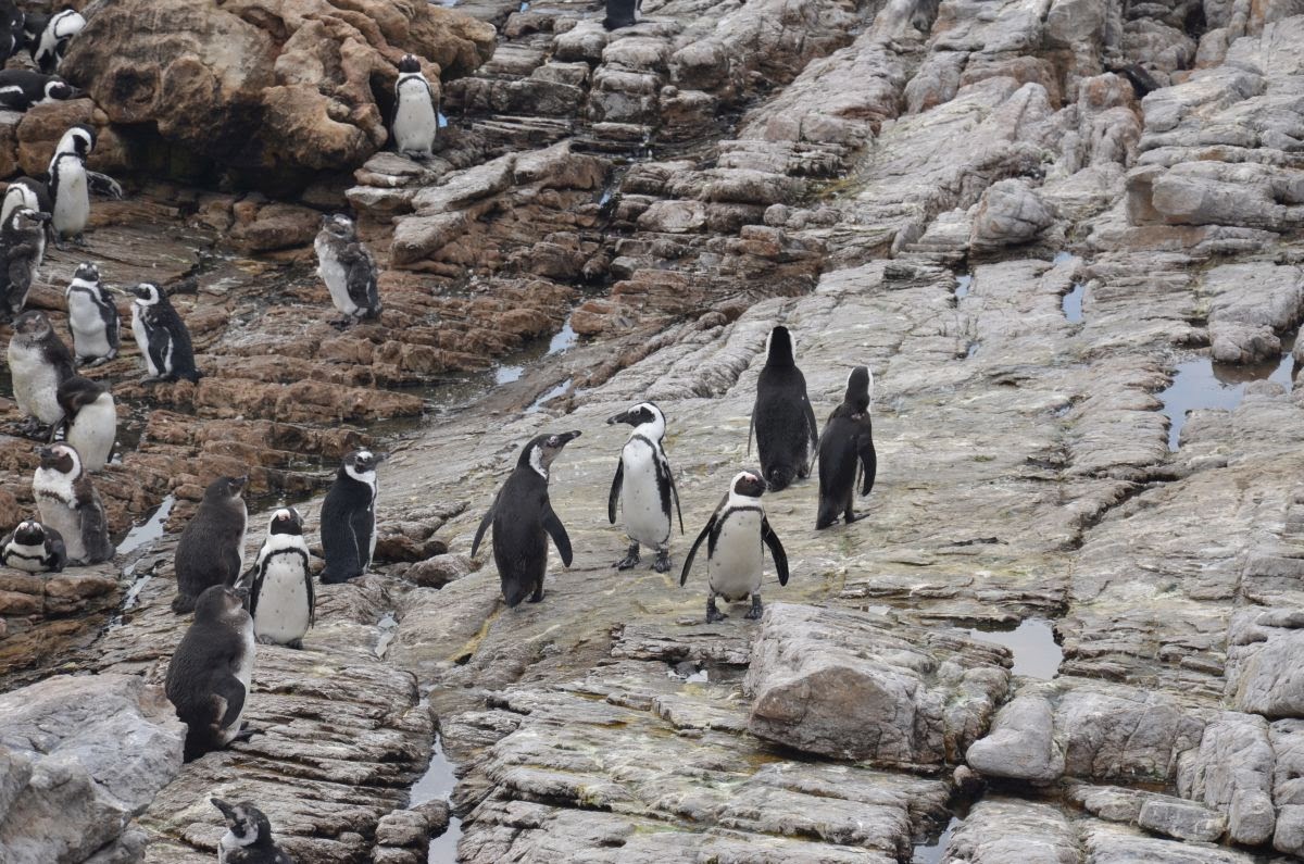 Auf unserem Weg weiter Richtung Kapstadt halten wir an einer kleinen unscheinbaren Feriensiedlung an – Bettys Bay. Hier lebt am Stoney Point eine kleine Kolonie der seltenen Brillenpinguine. Es macht Spaß, ihnen zuzusehen.