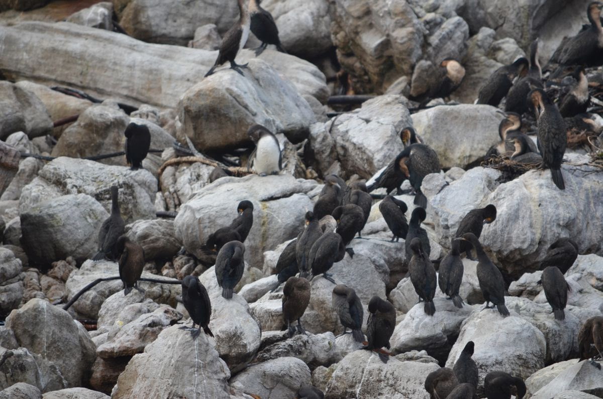 Außerdem finden sich in den Felsen viele Kormarane (wir glauben, die sind es) und auch andere Vögel.