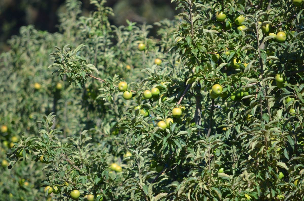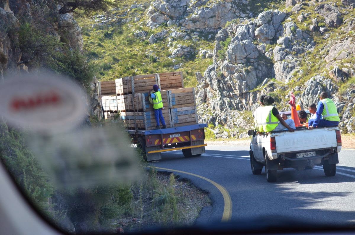 An steilen Hängen wachsen auf kilometerweiten Plantagen Äpfel und Birnen, die zur Zeit geerntet und in Holzkisten auf LKWs abtransportiert werden. Das Obst findet schon unterwegs auf der Straße seine Liebhaber und illegalen Abnehmer, wie man auf den letzten drei Fotos erkennen kann.