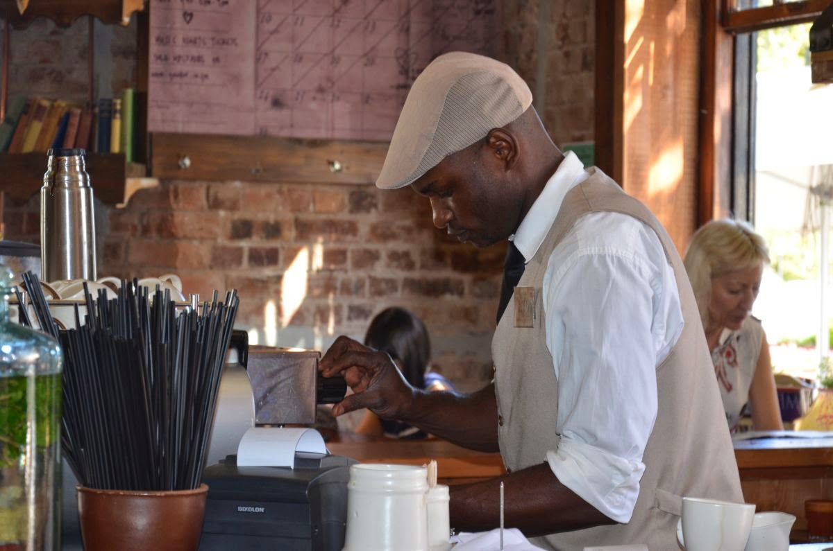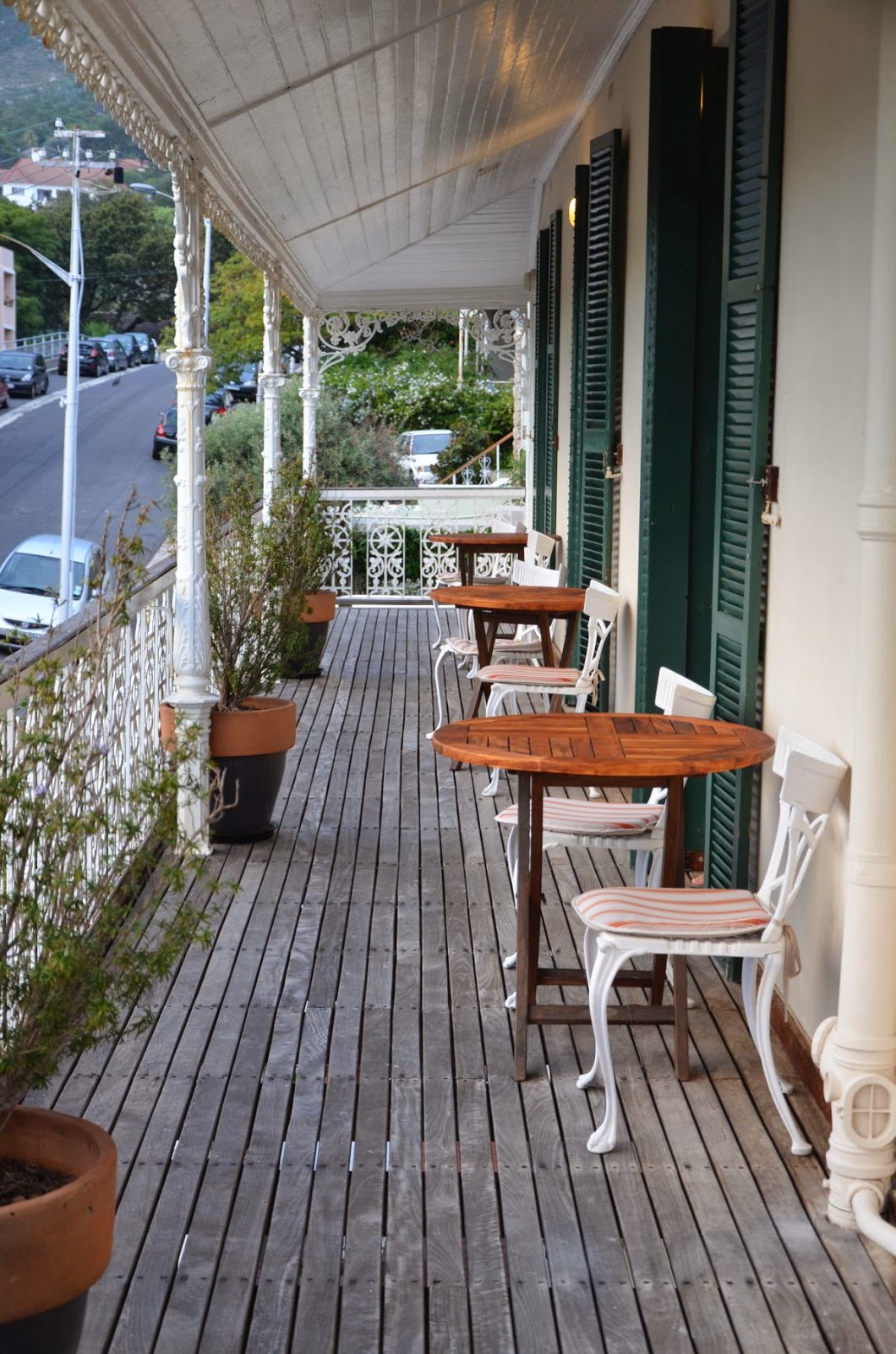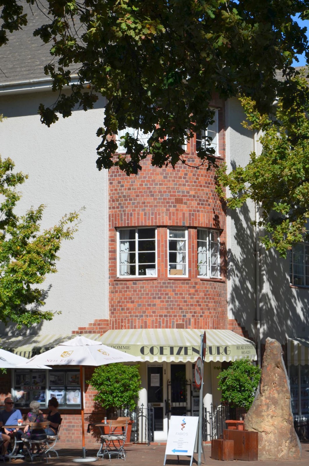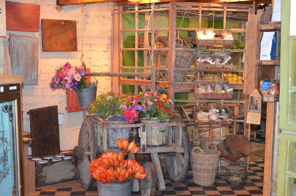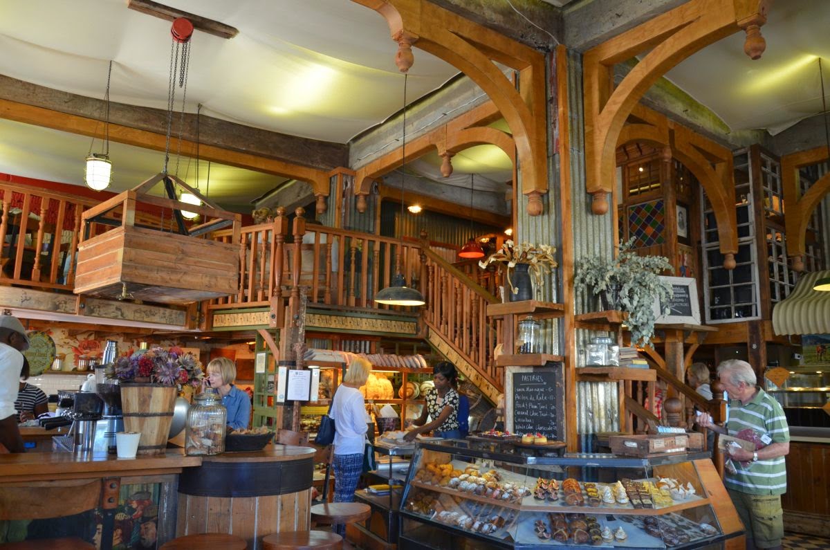 Vor den Toren Kapstadts liegt Stellenbosch, die ehemals 2. Europäische Stadtgründung am Kap. Der historische Stadtkern ist noch genauso erhalten wie zwischen dem 17. und 19. Jahrhundert. Strahlend weiße Fassaden mit überdachten Terrassen säumen die Straßen. Hier herrscht reges Treiben und alles scheint sehr touristisch zu sein. Lediglich ein außergewöhnliches Lokal fällt uns auf, in dem äußerst stilvoll verschiedene Angebote unter einem Dach präsentiert werden – Kaffeerösterei, Floristik, Winetasting, Bäcker, Metzger und einiges mehr.