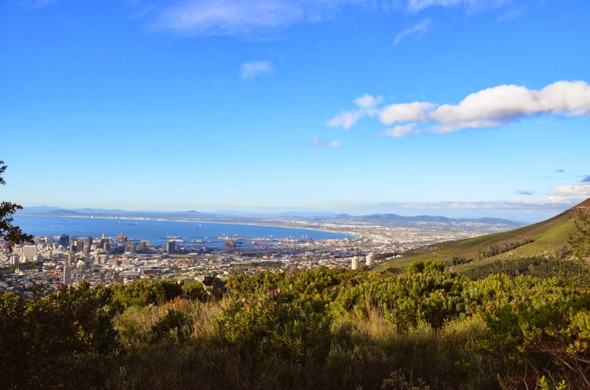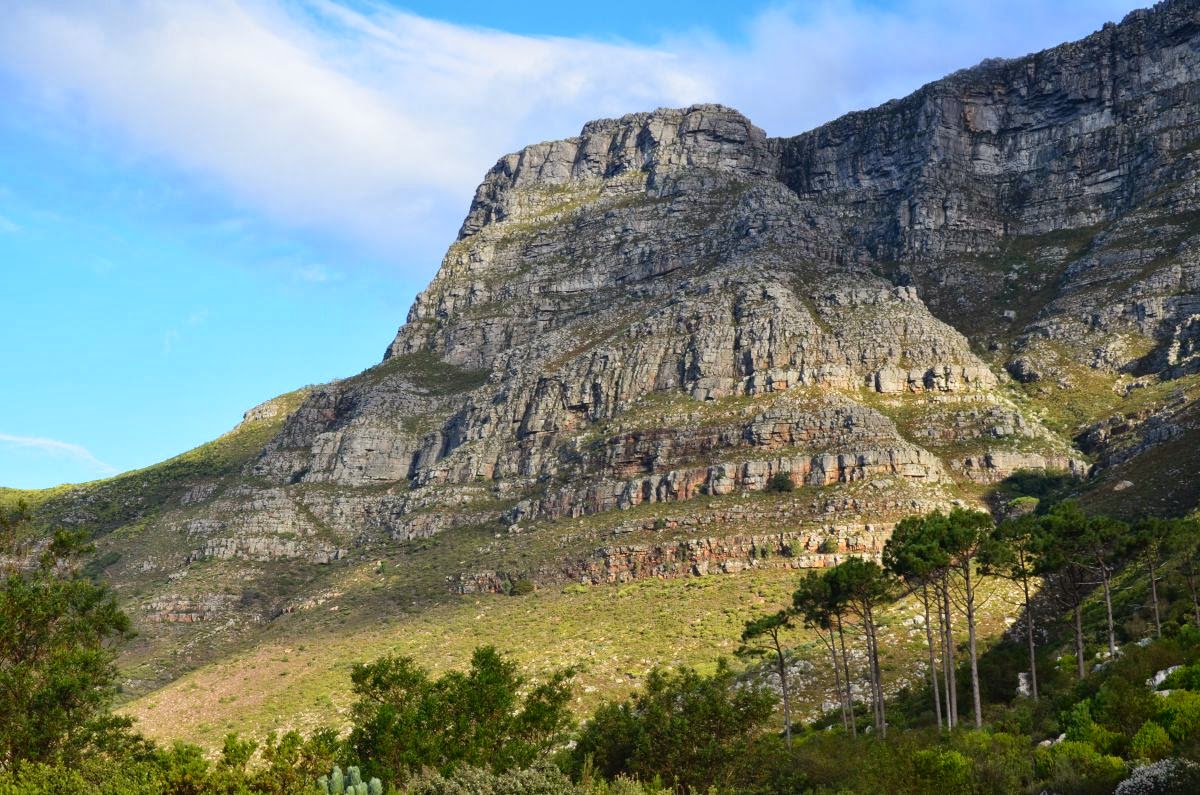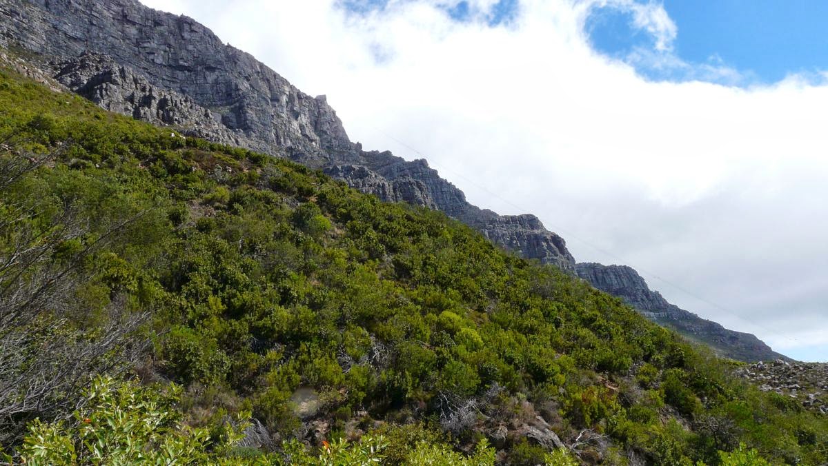 Angesichts der des tollen Wetters lohnt es sich heute auf den Tafelberg zu wandern. Wahrzeichen von Kapstadt oder Cape Town, wie man hier sagt, ist der 1087 m hohe Tafelberg, der südlich des Stadtkerns aufragt. Auf Grund seiner Lage zwischen der Westküste und der False Bay besitzt der Tafelberg ein Gebirgsklima mit viel Niederschlag. Es gibt viele verschiedene Möglichkeiten, den Tafelberg zu erklimmen. Wir entscheiden uns für für den Platteklip Gorge Hiking Trail und steigen in 2,5 Stunden über einen steilen steiningen Weg die über 600 Höhenmeter hinauf zum Gipfel.