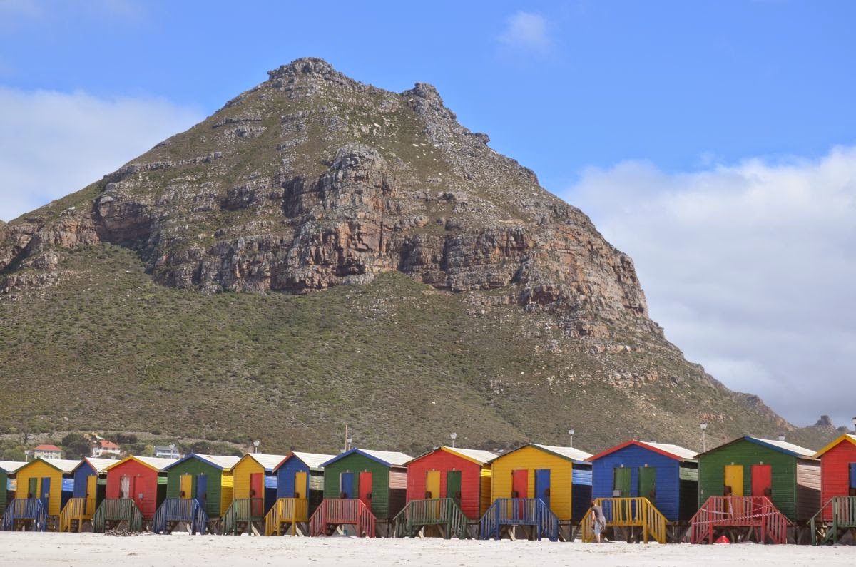 So machen wir uns gleich nach dem Frühstück auf, um genau diesen Teil Kapstadts zu erkunden. Einen ersten Stopp legen wir am Strand von St. James bei Muizenburg ein. Ein echt klassischer südafrikanischer Badeort mit niedlichen bunten Badehäusern.