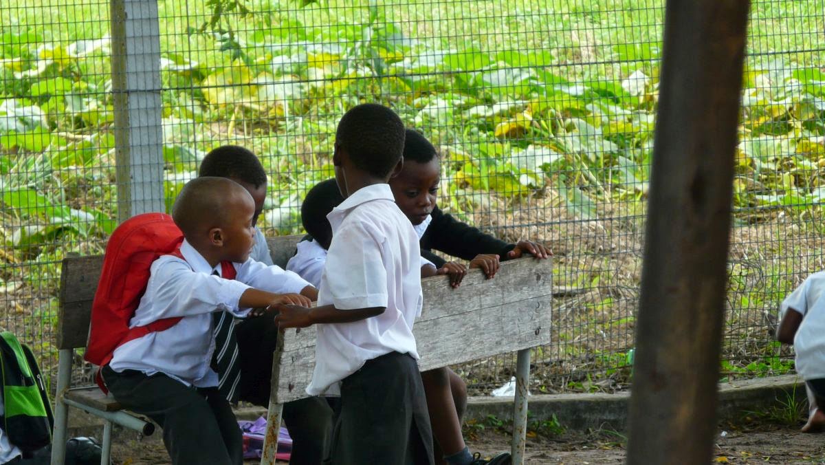Wir besuchen zunächst einen Kindergarten. Die Kinder warten schon auf uns und zeigen stolz wie sie singen und tanzen und auch schon die ersten Begriffe zweisprachig lesen können. Von der freundlichen „Mama“ werden sie einmal am Tag bekocht, bevor es am Nachmittag wieder nach Hause geht.