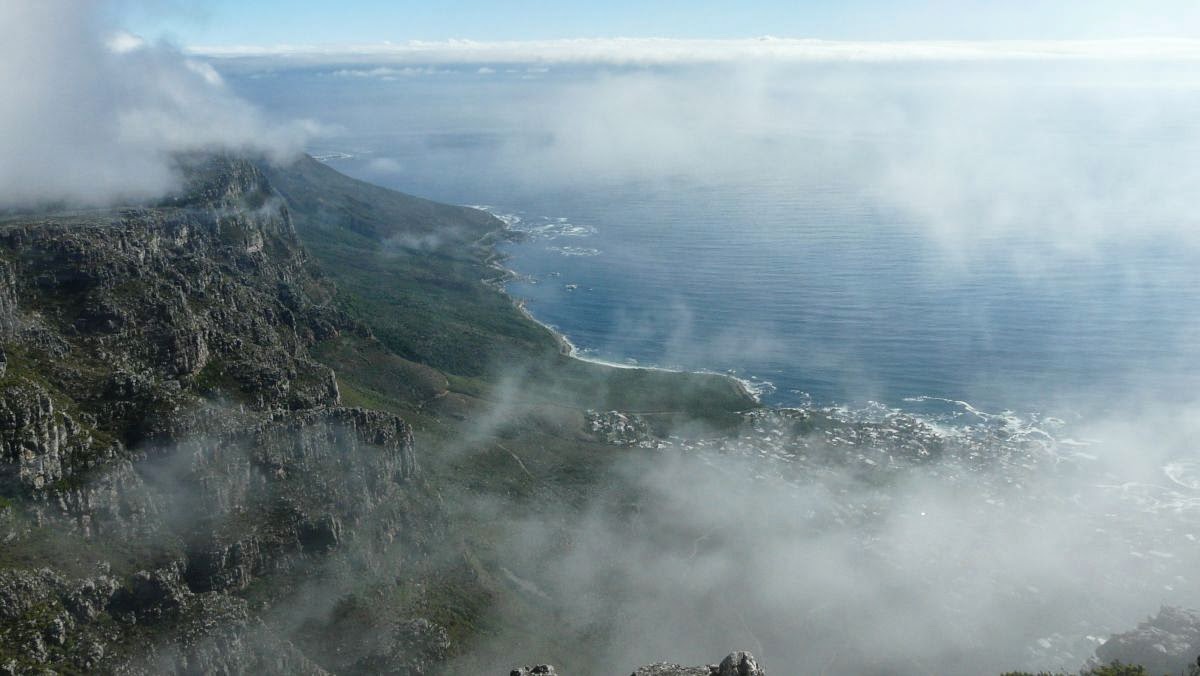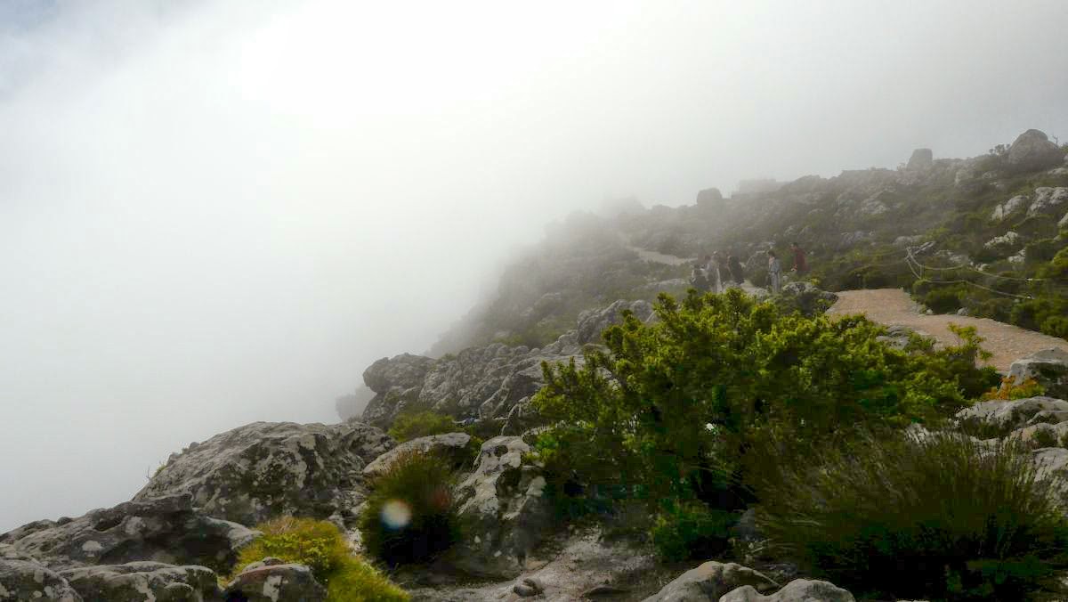 Oben angekommen versinken wir etwas im feuchten Nebel. So können wir die eigentlich atemberaubende Aussicht nicht ganz in vollen Zügen genießen. Trotz alledem ist es ein gigantisches Gefühl, oben auf dem Tafelberg in Südafrika zu stehen.