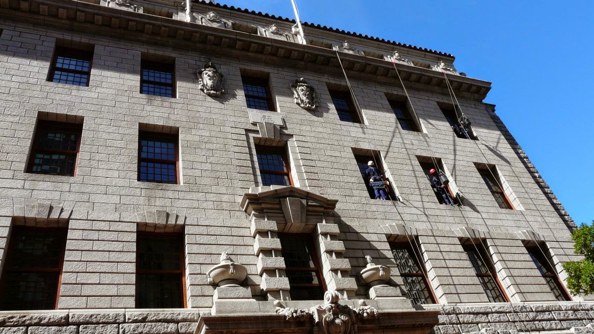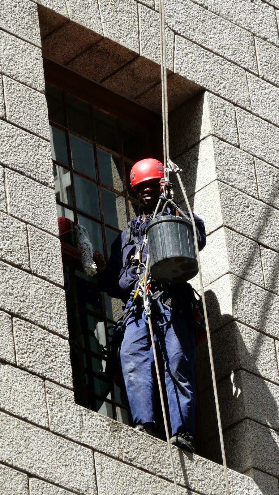Die Fensterputzer sind hier anscheinend noch mutiger als bei uns und benötigen keinen Steiger für ihre Arbeit.