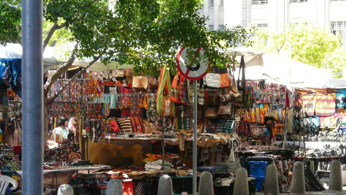 Wir erreichen den Green Market, das alte Herz der Stadt. Hier findet täglich ein Markt mit Kunsthandwerk und Trödel statt.