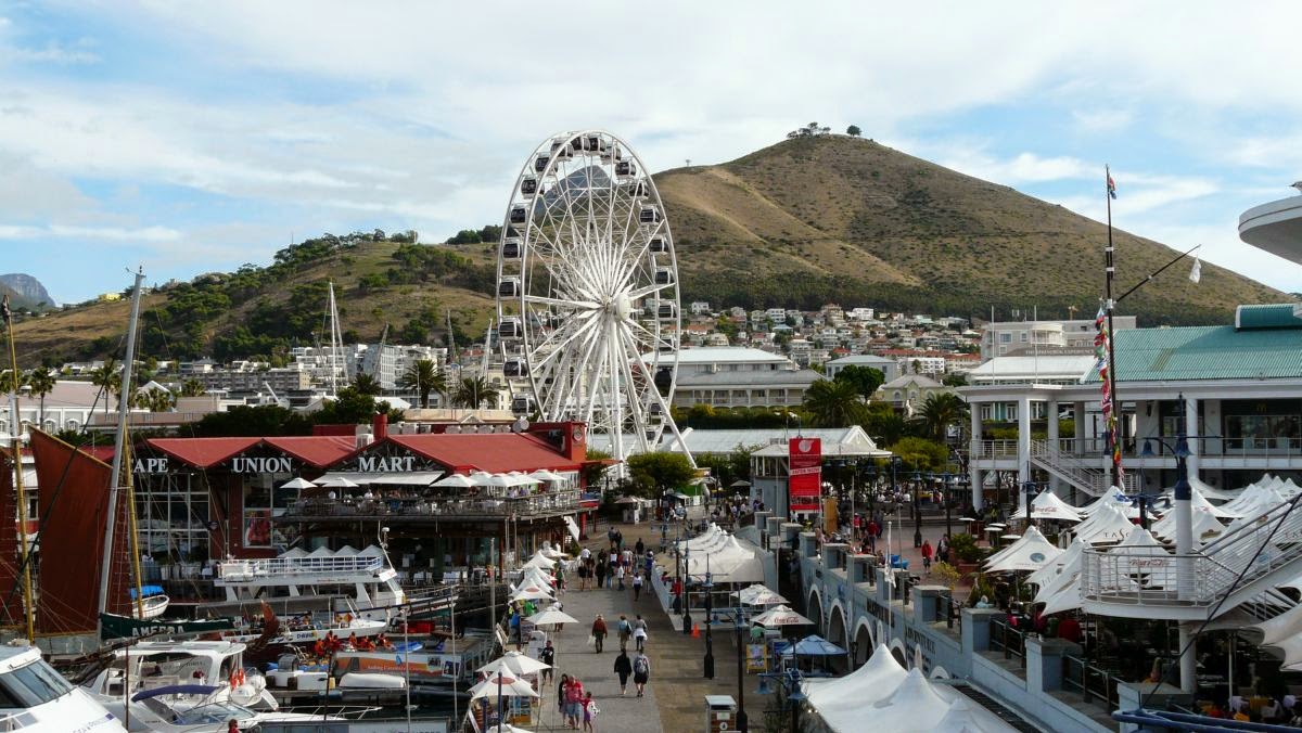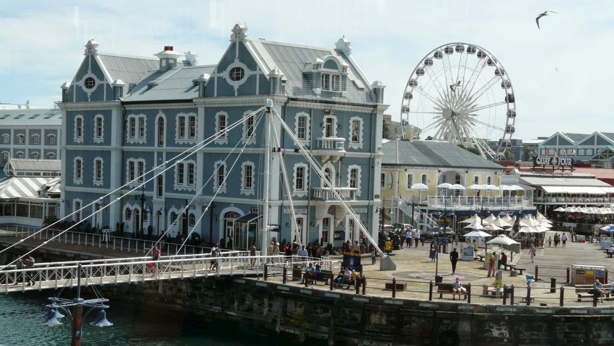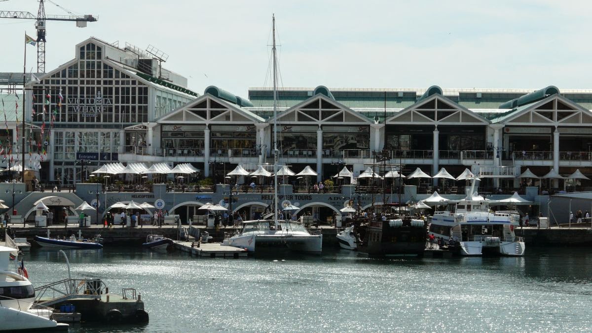 Das Hafengebiet „Victoria & Alfred Waterfront“ präsentiert sich heute als lebhaftes Flanier- und Vergnügungsviertel. Benannt ist es nach der englischen Königin Victoria und ihrem Sohn. Tag und Nacht sind hier Menschen unterwegs angelockt durch Shopping Malls (das Centro passt hier mindestens drei bis viermal hinein), Bars, Musikkneipen, Restaurants und Hotels. Gleich nebenan liegt das für die Fußball WM 2010 erbaute Cape Town Stadion mit seiner Multifunktionsarena.