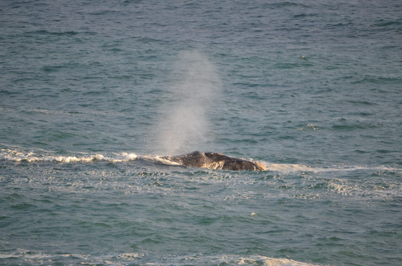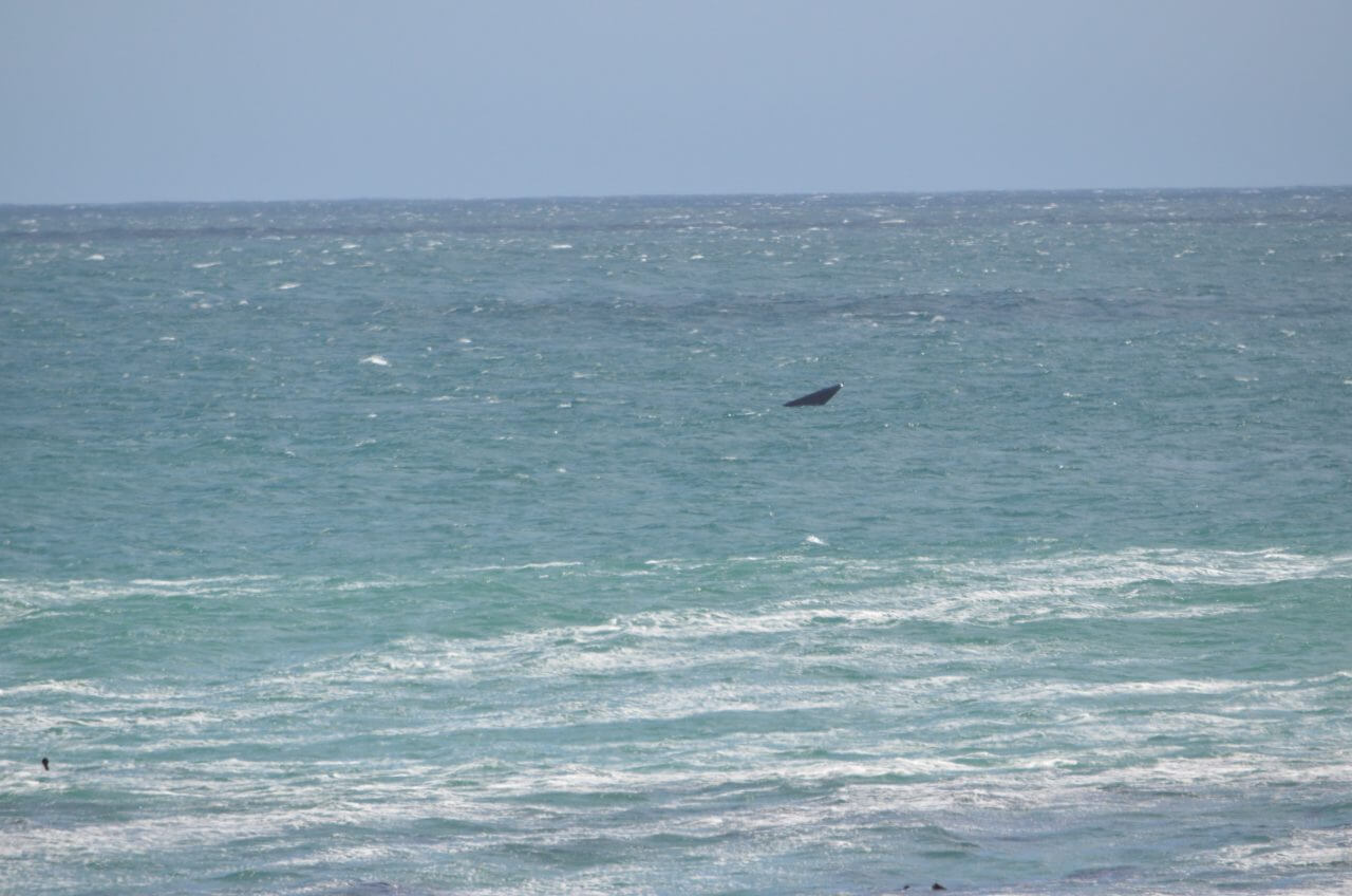 Denn nachdem endlich alles geregelt ist und wir mit einem Toyota zurückfahren können, schnüren wir am späten Nachmittag die Wanderschuhe und laufen von unserer Unterkunft direkt auf den “Cliff Path”. Das ist ein insgesamt 17 Kilometer langer Wanderwege entlang der Küste hier in Hermanus und berühmt für seine wunderbaren Aussichtspunkte um Wale zu beobachten. Und was soll ich sagen….gleich auf unserem ersten Trip sehen wir sie. Zwei der ca 15 Meter langen “Southern Right Whale” ziehen gemächlich entlang des Riff und tauchen von mal zu mal etwas aus dem Wasser. Gigantisch und faszinierend. Weiter draußen scheinen sich noch mehrere zu tummeln, doch die sind für unsere Objektive leider zu weit weg.