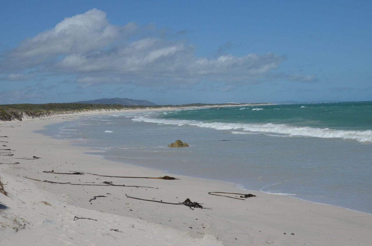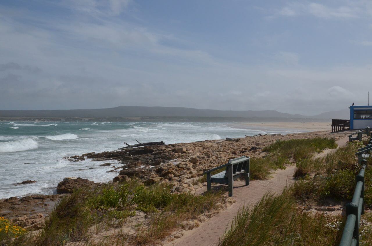 Dann geht es weiter auf der anderen Seite des Flusses über Gravel Roads bis nach Port Beaufort, ein klitzekleiner Hafen an der Mündung des Breede River und Witsand, gefühlt am Ende der Welt, direkt am Ozean. Auch hier toben die Wellen, der Strand liegt verlassen. Leider können wir weder ins Wasser, noch raus mit einem Boot aufs Wasser noch sichten wir Wale oder Delfine, wohl wissend, dass das alles hier möglich wäre.