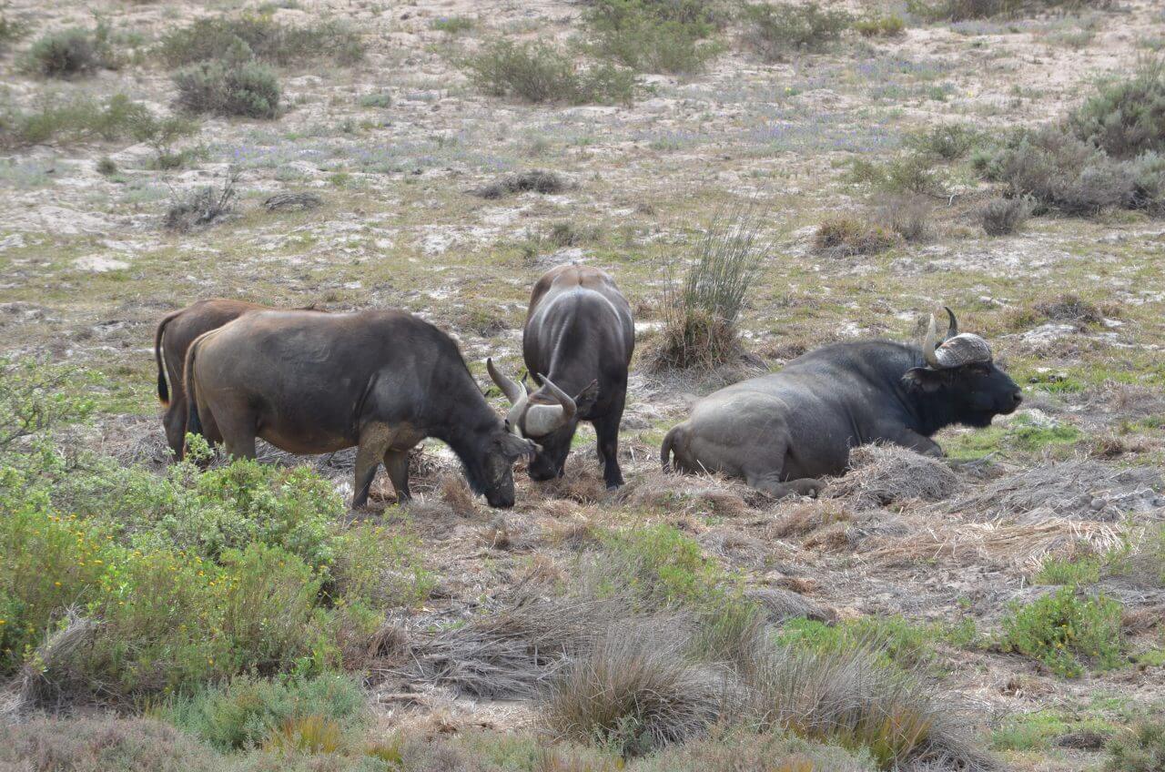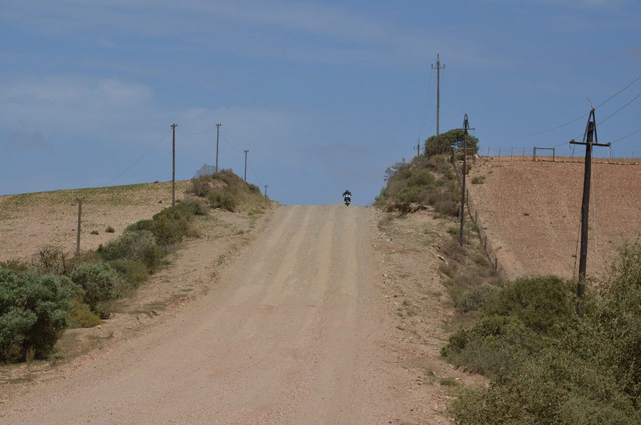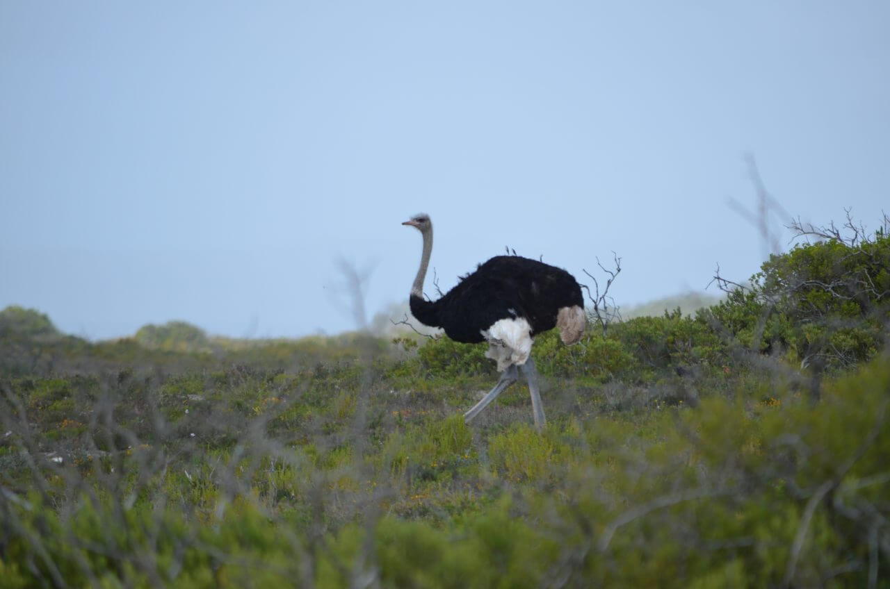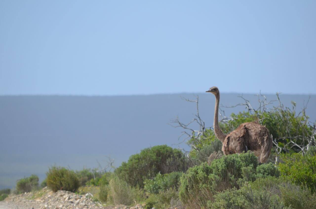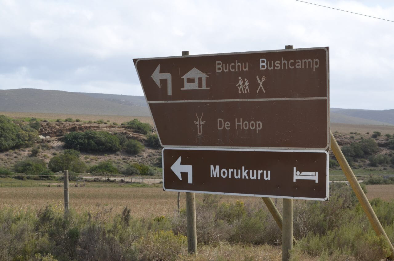 In der Nacht hat es draußen permanent weiter gestürmt uns so bleiben wir einfach noch etwas in den kuscheligen Betten und frühstücken ausgiebig in unserem kleinen Cottage, bevor wir uns auf den Weg zum Natur Reservat De Hoop machen. Der Weg dorthin führt auch heute wieder ausschließlich über Gravel Roads. Wenn uns Einheimische entgegen kommen oder uns überholen, versinken wir jedes mal in einer riesigen Staubwolke. Die fahren mit einem Affenspeed über die Piste und fliegen einfach über all die Schlaglöcher.