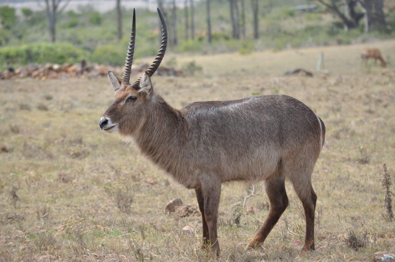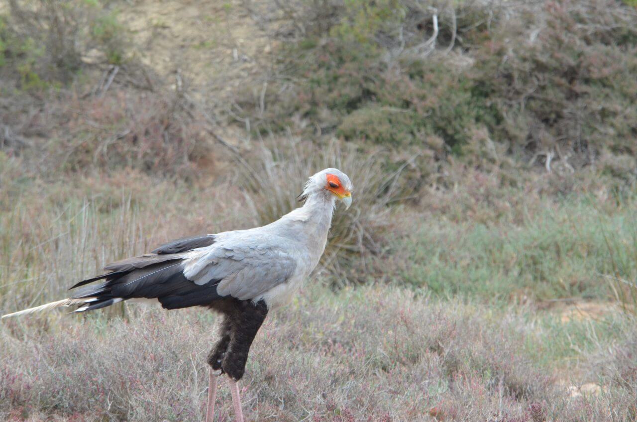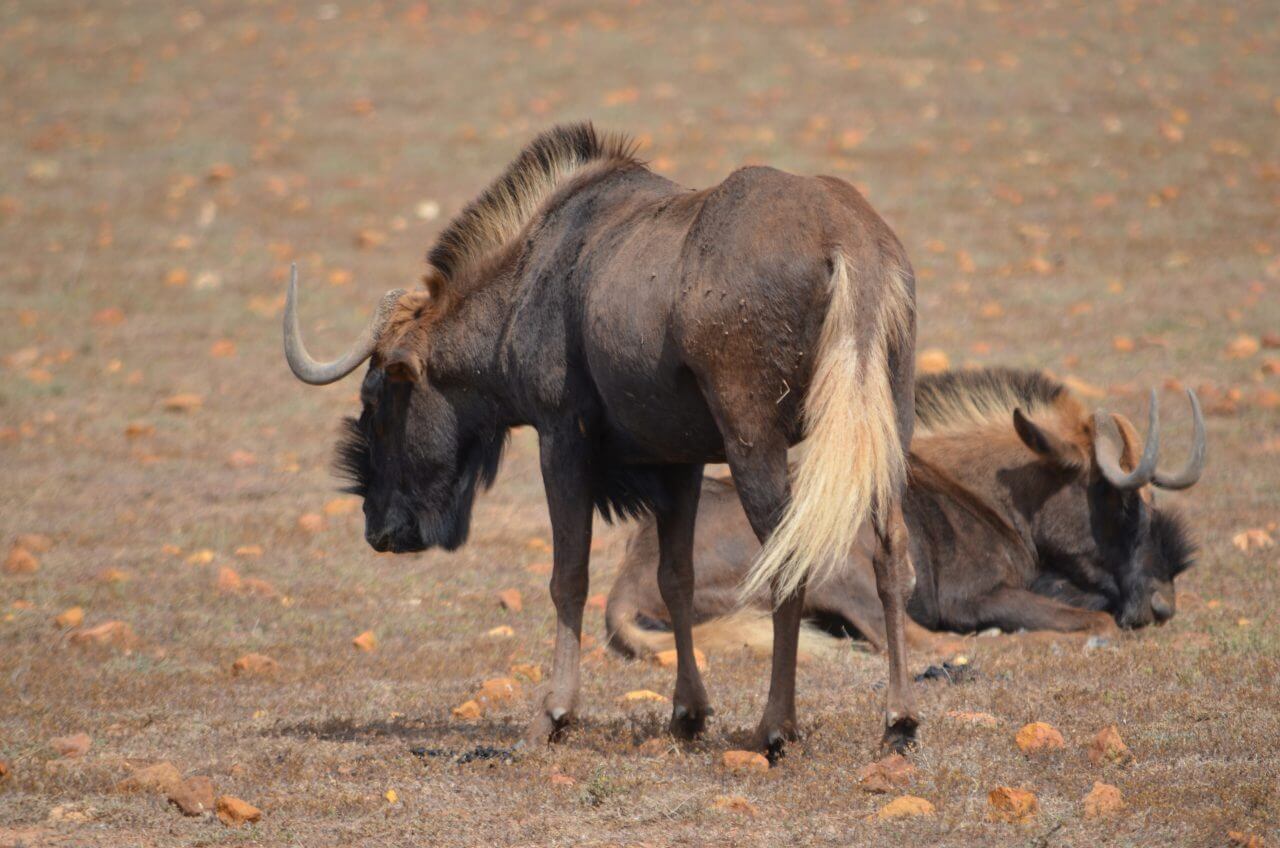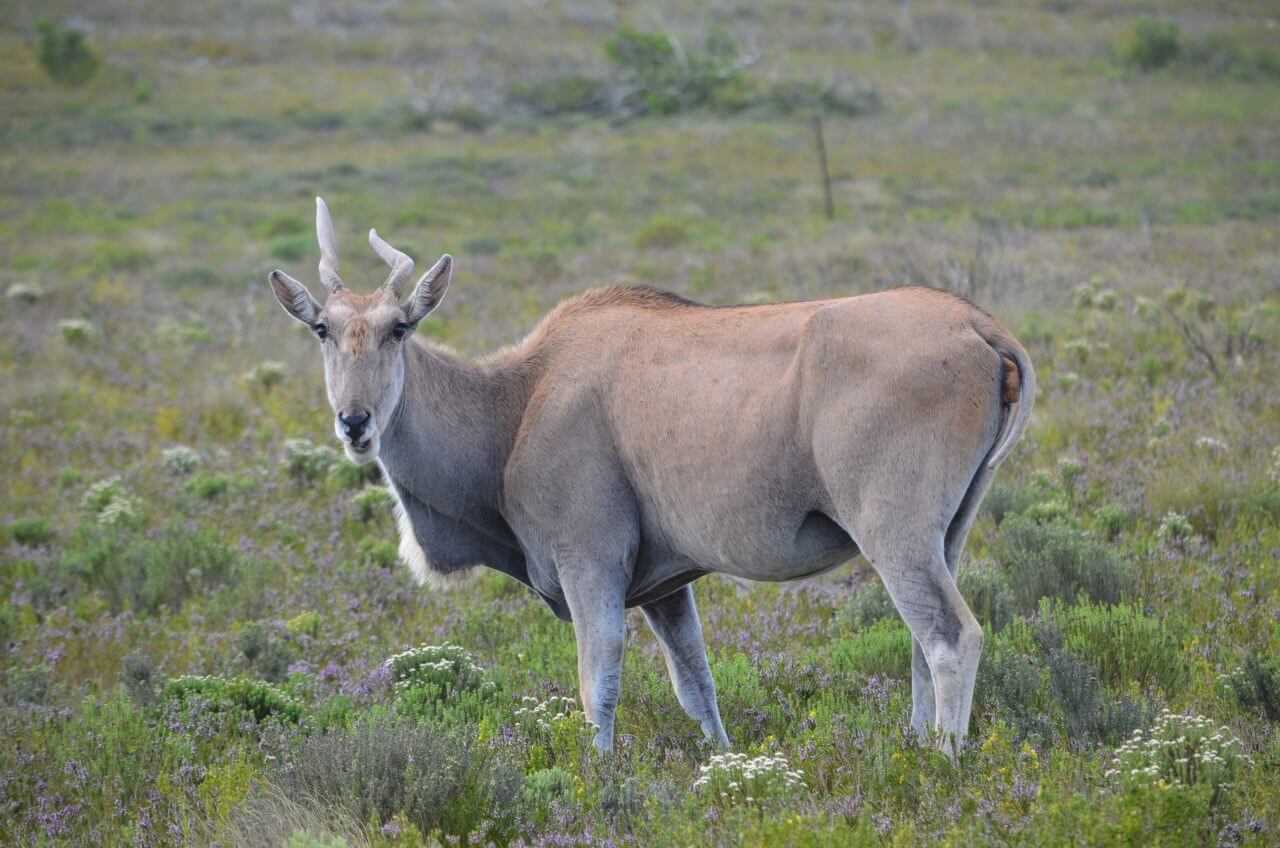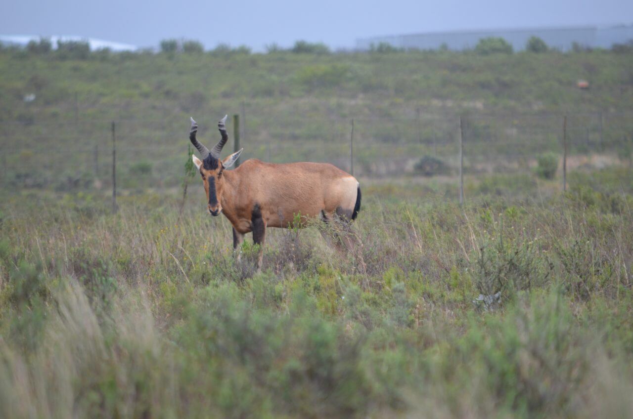 Heute morgen heißt es Abschied nehmen von diesem abgelegenen, aber wunderschönen Fleckchen Erde. Die nächste Stunde geht es wieder über Stock und Stein bis dass wir eine richtige Straße erreichen. Auf der N2 geht es dann weiter bis kurz nach Albertinia, dort befindet sich die Garden Route Game Lodge. Wie wir heraus gefunden haben, können wir hier auch als Day Visitors, also ohne dort für eine Übernachtung gebucht zu haben, an einer Safari im offenen Fahrzeug teilnehmen. Also fahren wir direkt aufs Gelände, lassen uns registrieren und buchen an der Rezeption eine zweistündige Safari in dieser privaten Game Lodge. Die eine Stunde noch, bis dass es losgeht, überbrücken wir mit einem kleinen Snack im Restaurant und mit Sightseeing im Souveniershop. Dann erwartet uns die Rangerin und los geht es im offenen Safariwagen mit sechs anderen Gästen.