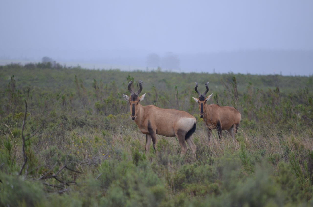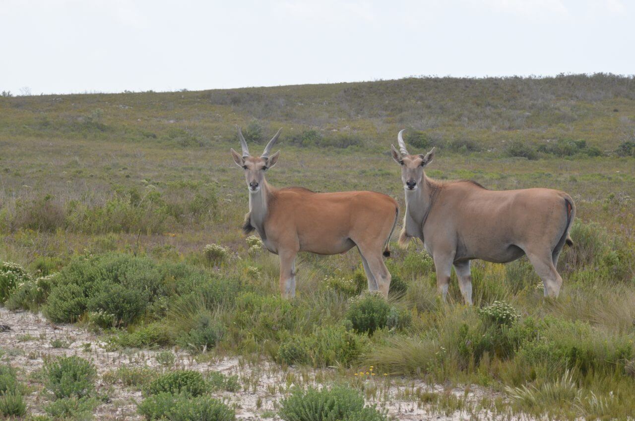 Wir nutzen die Chance, noch vor dem Frühstück wieder eine Runde im Pool zu drehen. Herrlich! Diese Unterkunft gab es nur mit Frühstück zu buchen und so sitzen wir gemeinsam mit anderen deutschen Gästen ganz gemütlich bei einem ausgiebigen Frühstück zusammen auf der gemütlichen Terrasse. Nachdem unser Auto wieder startklar gepackt ist, machen wir uns auf in den nehegelegenen Bontebok Nationalpark. Auch hier müssen wir uns registrieren, Eintritt bezahlen und dann dürfen wir in das Areal einfahren. Der Bontebok Nationalpark am Fuß der Langenbergkette, wurde 1930 zur Arterhaltung der Buntböcke, einer Antilopenart mit braun weißer Markierung an Stirn und Hinterteil errichtet. Hier kommen wir auch dem Breede River wieder ganz nahe. Wir entscheiden uns für eine Hiking Tour entlang des Rivers mit mehreren schönen Aussichtspunkten. Leider ziehen immer mehr Wolken am Himmel auf, es wird schwül und beginnt auch leicht zu nieseln. 😑 So machen wir die restliche Tour durch den Park mit dem Auto und sehen wenigstens noch einige der hier beheimateten Buntböcke und der Red Beaste.