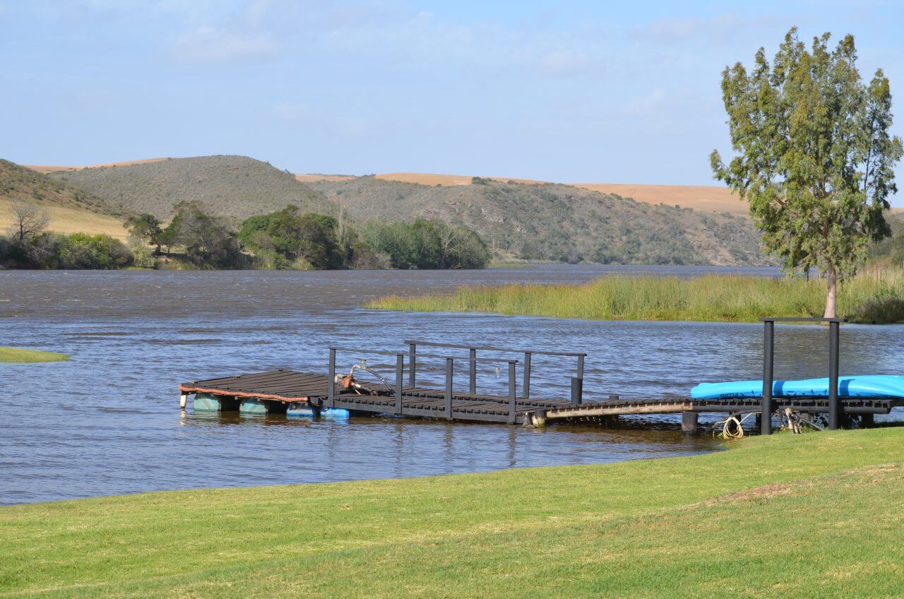 Nachdem wir De Hoop verlassen, fahren wir nochmals 30 km und erreichen über eine abendteuerliche Zufahrt in Schrittgeschwindigkeit die Tides River Lodge, wo wir für die nächsten zwei Tage das Bootshaus gemietet haben. Wunderschön ist es hier unten am Breede River.