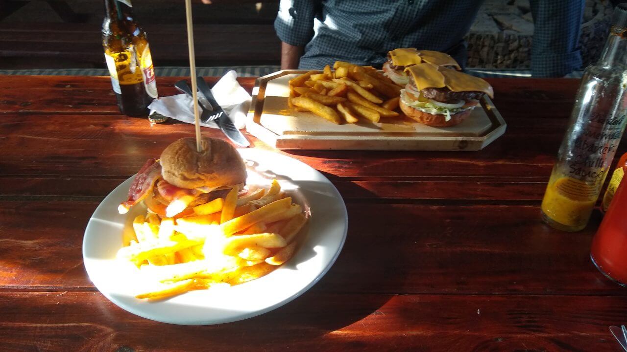 Trotzdem fahren wir noch einmal wieder raus auf die staubige Straße, um an der Kreuzung bei der Trading Post einzukaufen und nebenan bei Grunters einen köstlichen Burger zu verspeisen.