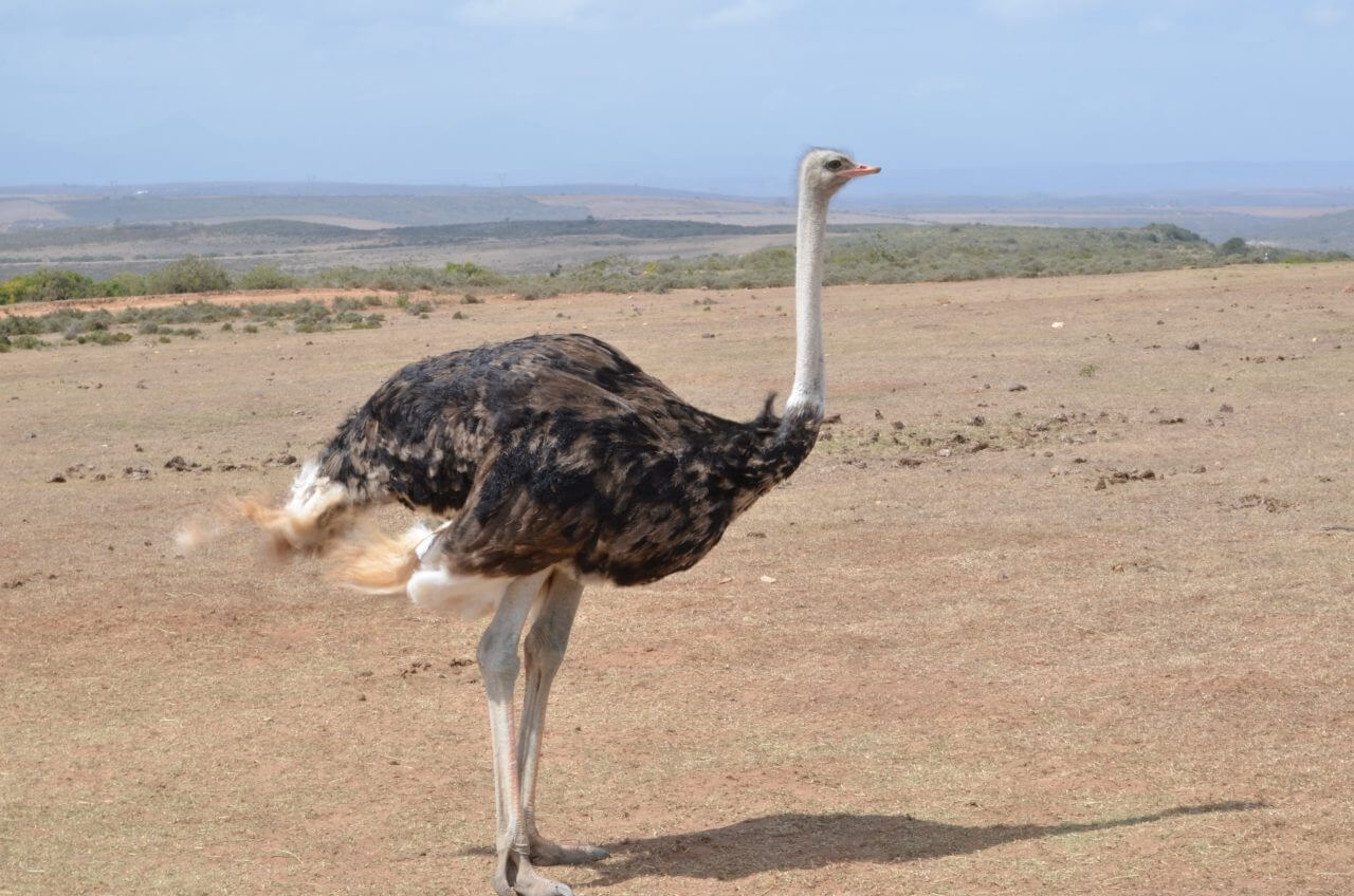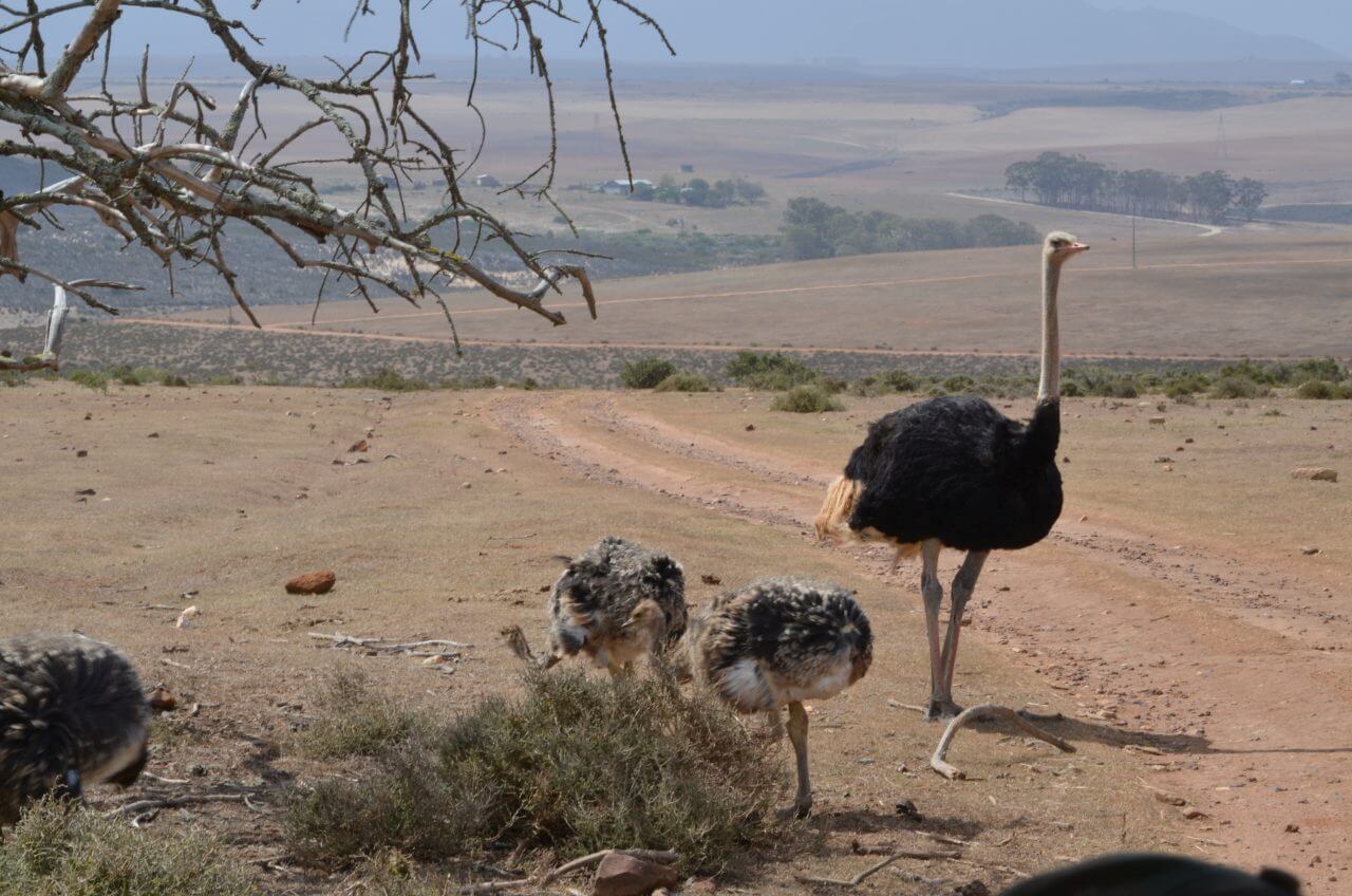 Rund um Oudtshoorn leben die Landwirte von der Straußenzucht. Hier wird der Vogel Strauß komplett vermarktet. Überall in der Stadt begegnen uns seine Produkte: Straußeneier frisch für die Küche, Straußeneierschalen als Dekoration, Straußenfedern als Staubwedel oder als Federboa verarbeitet, Handtaschen und Portemonnaies aus Straußenleder, Straußensteak als Delikatesse in den Restaurants. Und nicht zuletzt Reiten auf dem Rennvogel Strauß auf den verschiedenen Farmen.