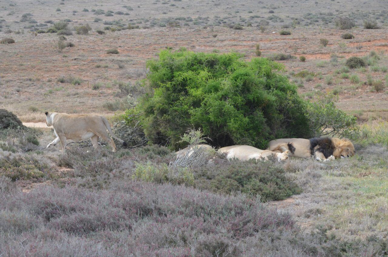 Wie man unschwer an den Fotos erkennen kann, gibt es allerhand in dieser weitläufigen Steppe zu sehen. Zwei Stunden sind wir unterwegs. Aber letztendlich werden uns die “hauseigenen” Tiere vorgeführt. Die Ranger kommunizieren untereinander mit Funkgeräten, so dass wir Gäste auch wirklich alle Tiere einmal zu sehen bekommen und unsere Fotos schießen können. Das hat so rein gar nichts mit den Großwildtieren, die in freier Wildbahn leben, zu tun. Die Löwen können zwar selber jagen, werden aber zugefüttert. Die erwachsenen Geparde tragen einen Sender, teils aus Sicherheitsgründen und wahrscheinlich auch, damit man sie für Sichtungen besser orten kann. Wie fantastisch war es doch im Krüger Nationalpark, wo wir tagelang alleine unterwegs waren, uns über jede Sichtung wie die Schneekönige gefreut haben und die Tiere so lange wie wir wollten beobachten konnten.